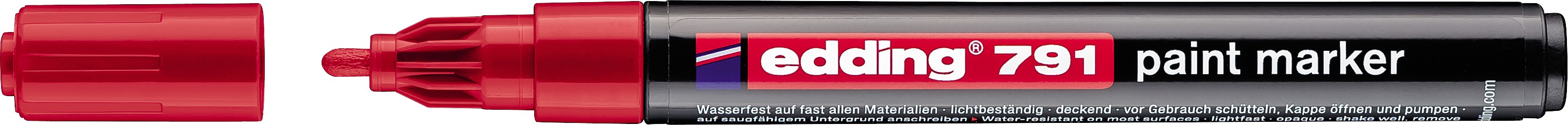 Vodootporni markeri za oslikavanje skoro svih materijala. Trag je potpuno neproziran, kako na providnim i mutnim, tako i na tamnim površinama. Otporan na svetlost, prašinu i toplotu.