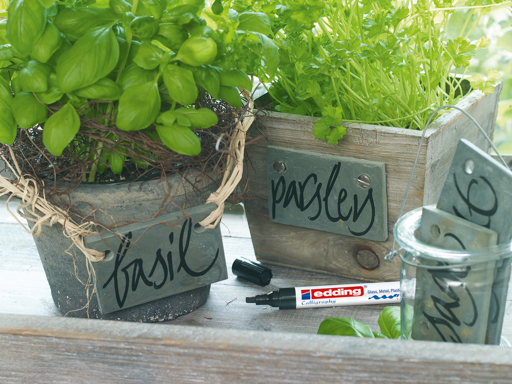 Marker sa specijalnim vrhom za kaligrafsko pisanje po različitim materijalima uključujući grube i porozne materijale kao što su drvo, terakota i platno. Primenjeno je permanentno mastilo na vodenoj bazi, koje se brzo suši i otporno je na svetlost i vlagu.