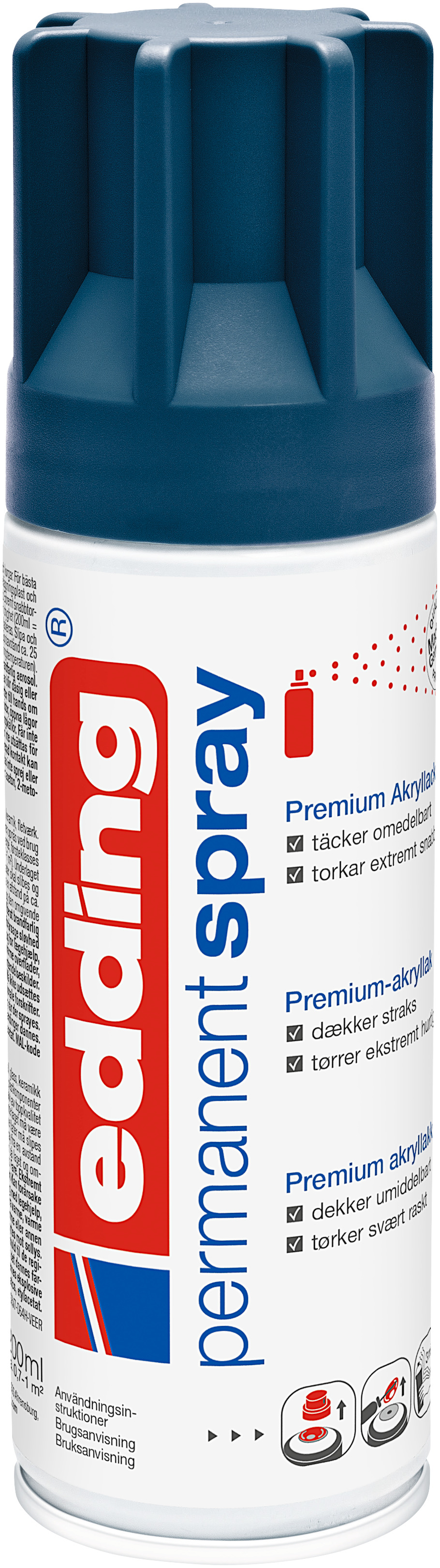 Edding permanentni sprejevi dolaze u velikom spektru atraktivnih boja i ističu se zahvaljujući izuzetnoj neprozirnosti, efikasnosti, izuzetno brzom vremenu sušenja i izdržljivosti.