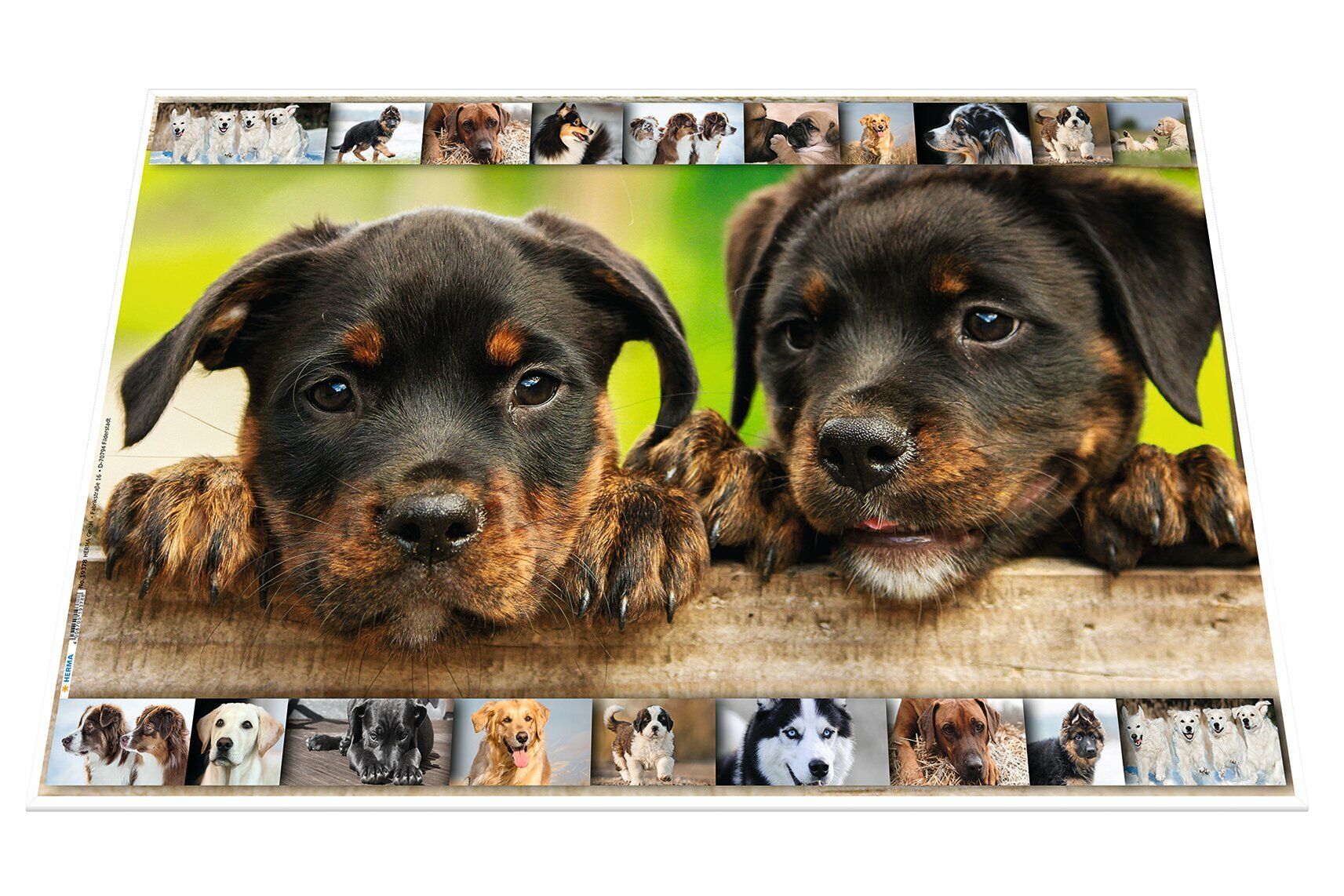 Šarena podloga za sto sa površinom mekom na dodir. Štampano sa obe strane, napravljeno od čvrstog premazanog kartona u formatu 550x350 mm.