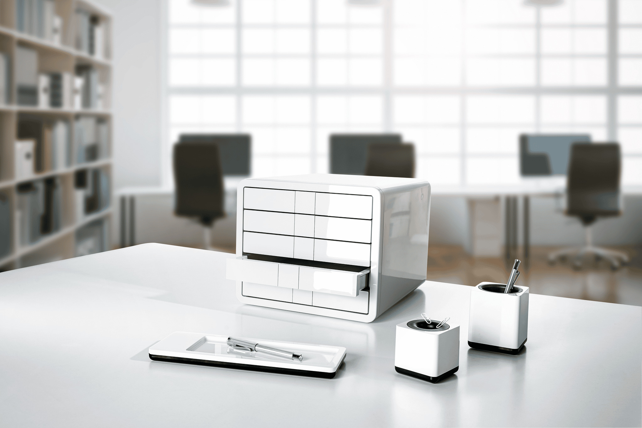 Jedinstven, vanvremenski, elegantan i inovativan dizajn sa visokim sjajem. Sadrži pet fioka za format max C4. Polica je vrhunskog kvaliteta i izrađena je od visokokvalitetne ABS plastike. Dimenzije fioke: 244x325x33 mm. Dimenzije police: 295x355x247 mm.