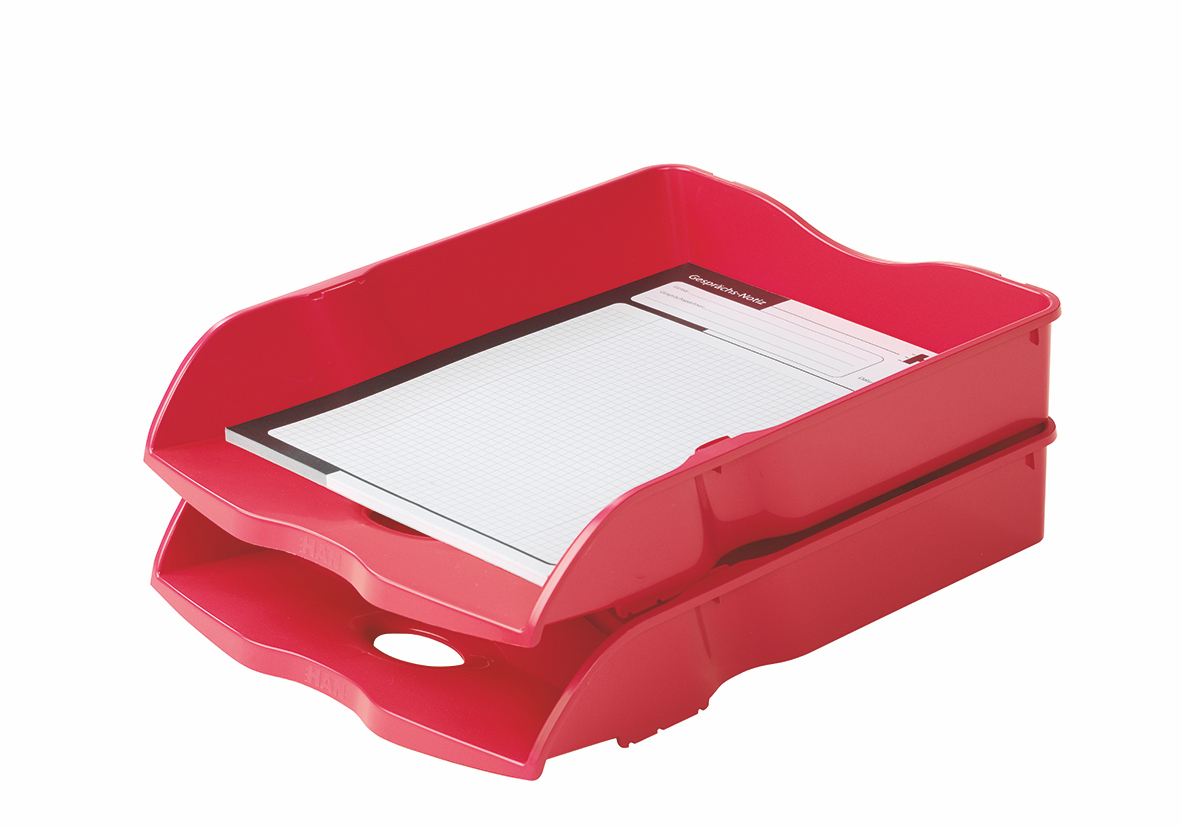 Polica za dokumenta iz RE-LOOP kolekcije inovativnog i modernog dizajna i oblika, dostupna u više veselih boja, izrađena od visokokvalitetne reciklirane eko-plastike. Dajte svom radnom mestu svež, nov izgled. Više njih se može spojiti u jednu stabilnu celinu.