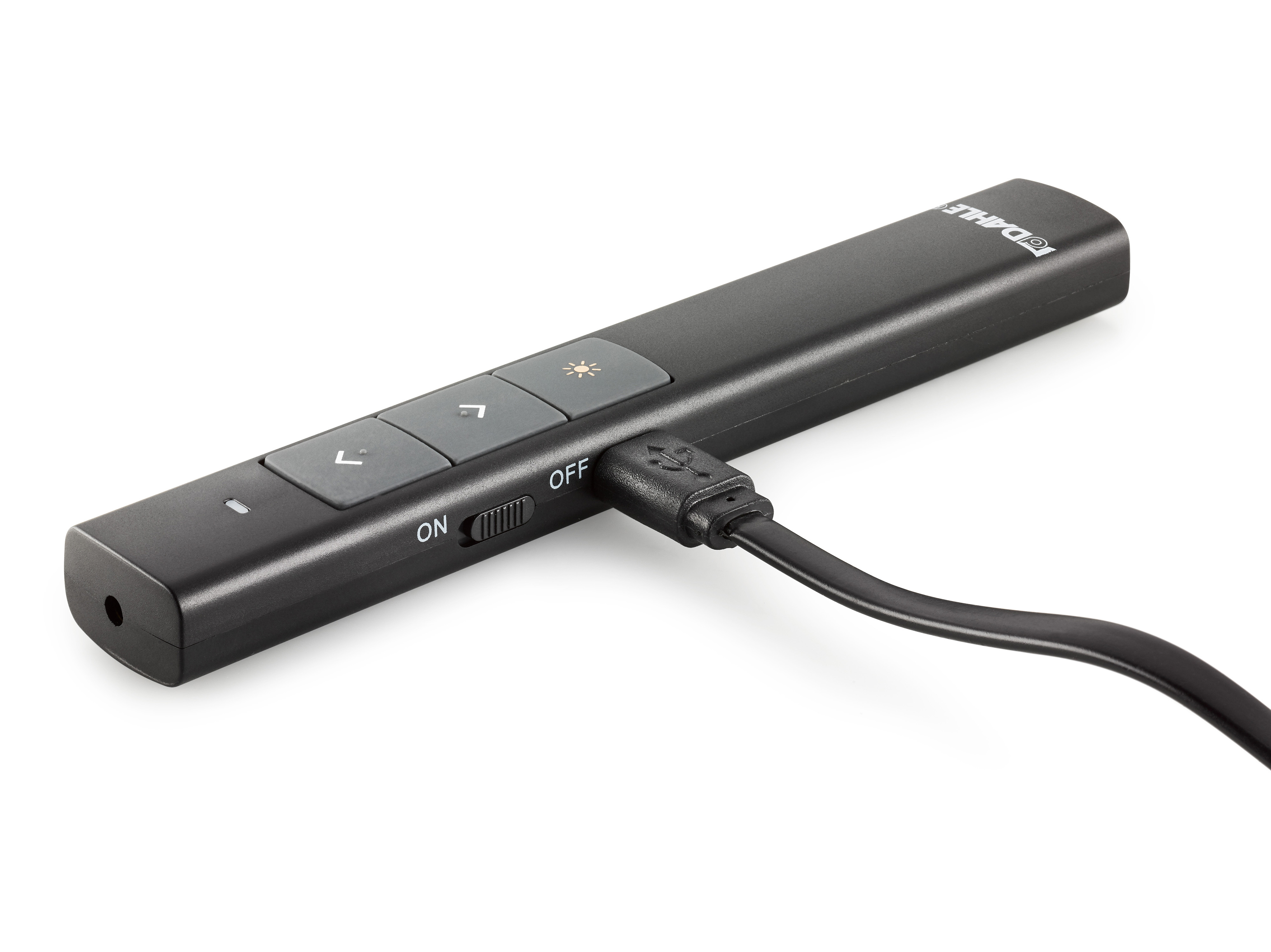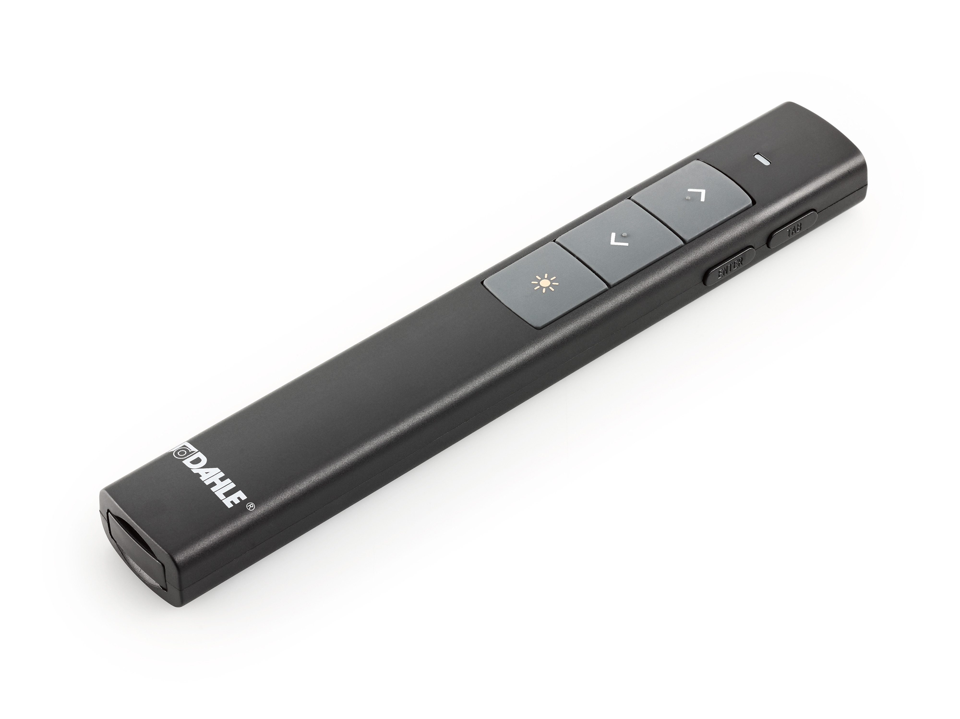 Uređaj za bežično upravljanje prezentacijama. USB risiver kompatibilan sa USB 1.1/2.0/3.0. Predajnik se puni preko USB kabla koji se dobija uz proizvod. Ugrađen laserski pokazivač sa crvenim laserom dometa 50m.