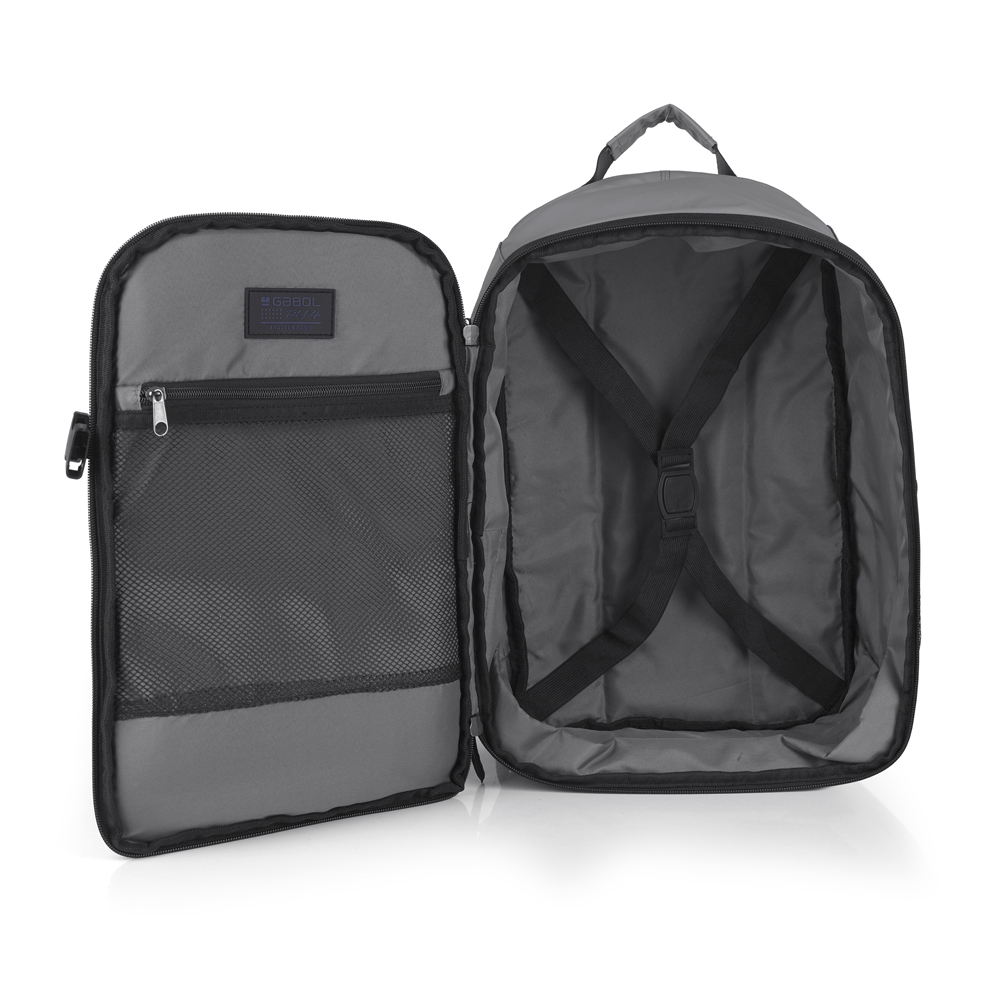 Ranac koji je potreban svakome: otvara se kao kofer, uklapa se u veličinu kabinskog prtljaga za low cost avio kompanije, dovoljan je za kraća putovanja i lagan. Pored glavne, poseduje i manju dodatnu pregradu sa spoljašnje strane, ojačane ramene kaiševe i ručku za držanje sa strane. Strap trakama ga je moguće dodatno osigurati i smanjiti dubinu. Može se staviti na ručku kofera i veoma je lepo dizajniran. Mateijal: kombinacija postavljenog poliestera i veštačke kože.