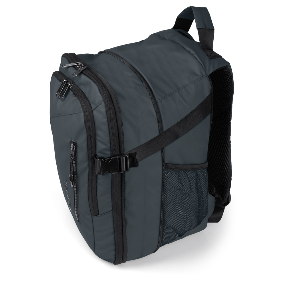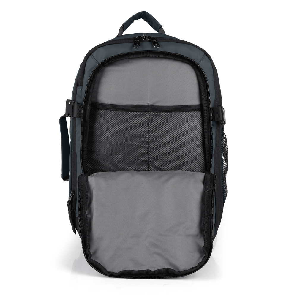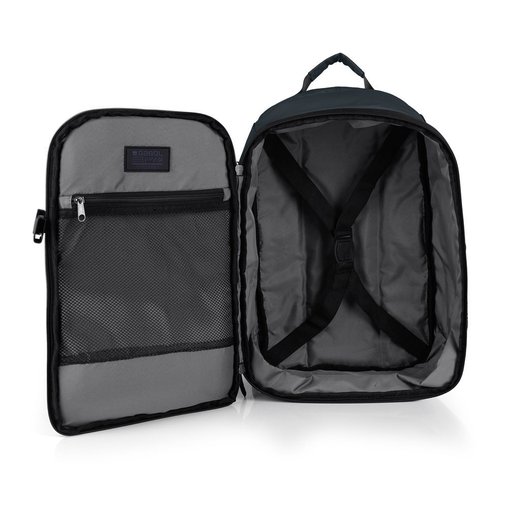 Ranac koji je potreban svakome: otvara se kao kofer, uklapa se u veličinu kabinskog prtljaga za low cost avio kompanije, dovoljan je za kraća putovanja i lagan. Pored glavne, poseduje i manju dodatnu pregradu sa spoljašnje strane, ojačane ramene kaiševe i ručku za držanje sa strane. Strap trakama ga je moguće dodatno osigurati i smanjiti dubinu. Može se staviti na ručku kofera i veoma je lepo dizajniran. Mateijal: kombinacija postavljenog poliestera i veštačke kože.