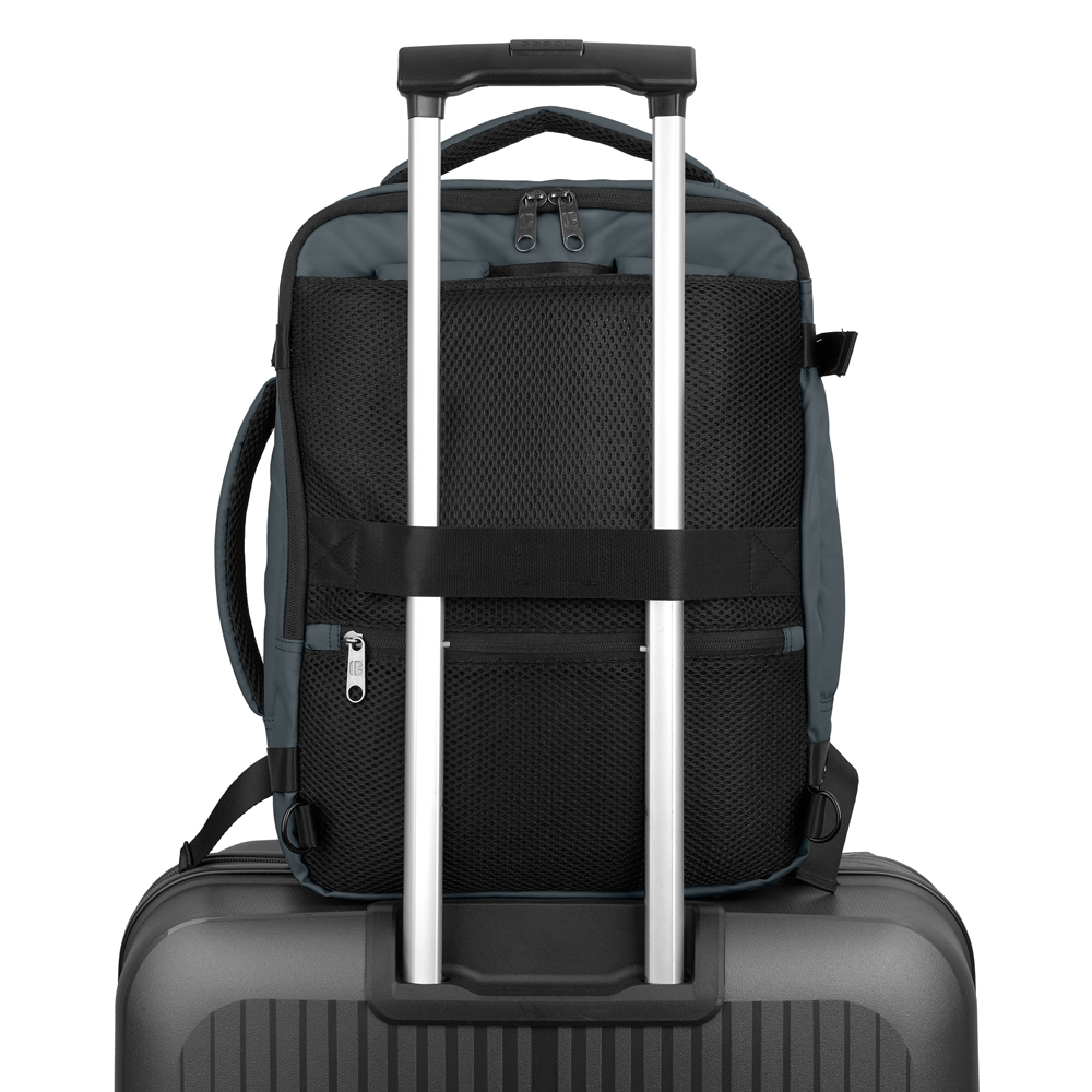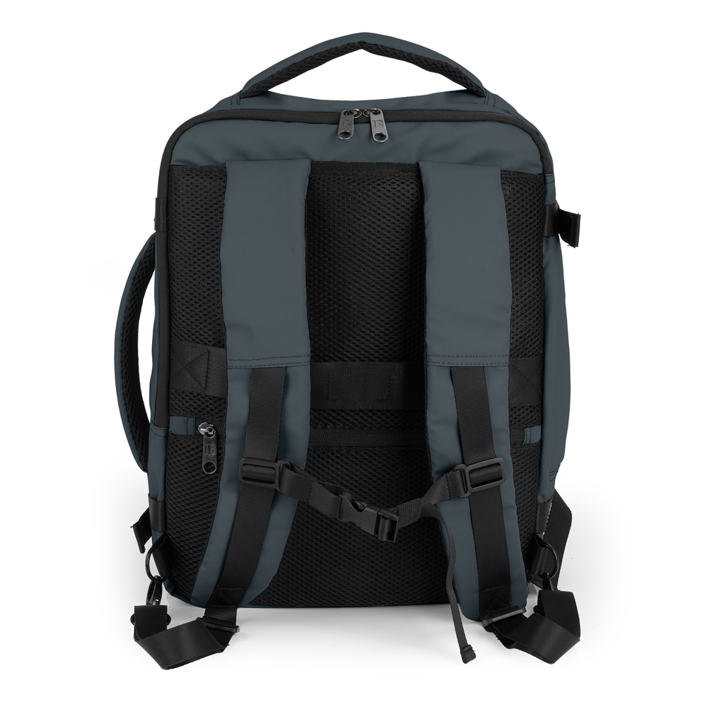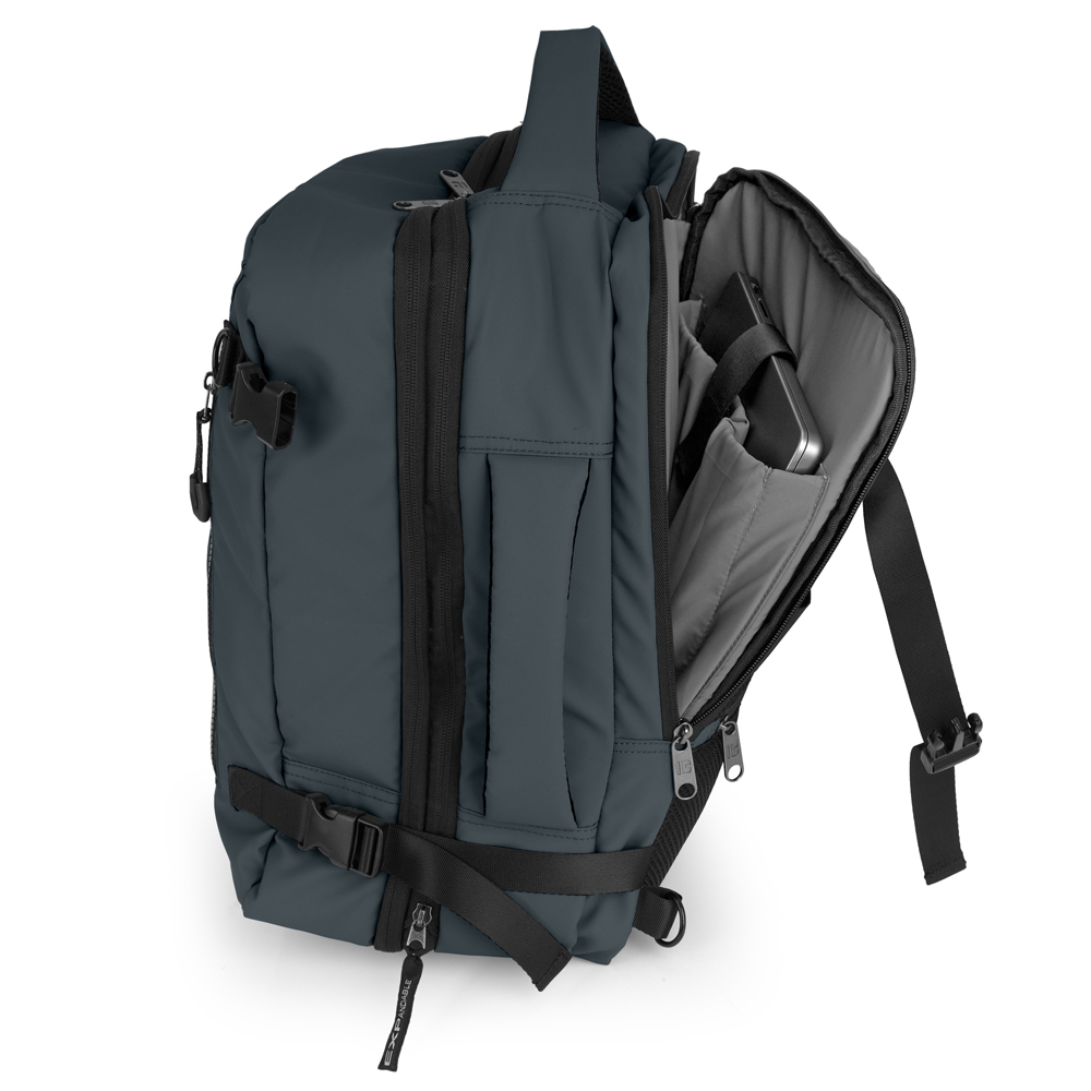 Apsolutno najbolje organizovan prtljag za low cost letove i kratka putovanja uopšte! Organizovan kao kofer, sa dva unutrašnja odeljka, koja se zatvaraju rajsferšlusima, sa mogućnošću znatnog proširenja od čak 4 cm po sredini, čime se između dve zatvorene pregrade dobija dodatni prostor za npr. jaknu. Treća pregrada je namenjena za laptop do 15,6" i nalazi se na leđima ranca. Na donjem delu leđa se nalazi i manja sigurnosna pregrada za novac i dokumente. Na prednjoj strani ranca je mala zip pregrada za sitnice. Ranac ima kvalitetne, ojačane ručke sa gornje i bočne strane, kao i čak četiri zatezača, a nemojmo zaboraviti ni zatezač na grudima, radi udobnosti prilikom nošenja. Uz svaki ranac dobijate kaiš za nošenje preko ramena. Materijal izrade je kombinacija postavljenog poliestera i veštačke kože, sa PVC free oznakom. Može se zakačiti na kofer. Izaberite jednu od četiri boje: crnu, tamnozelenu, sivu ili tamnoplavu.