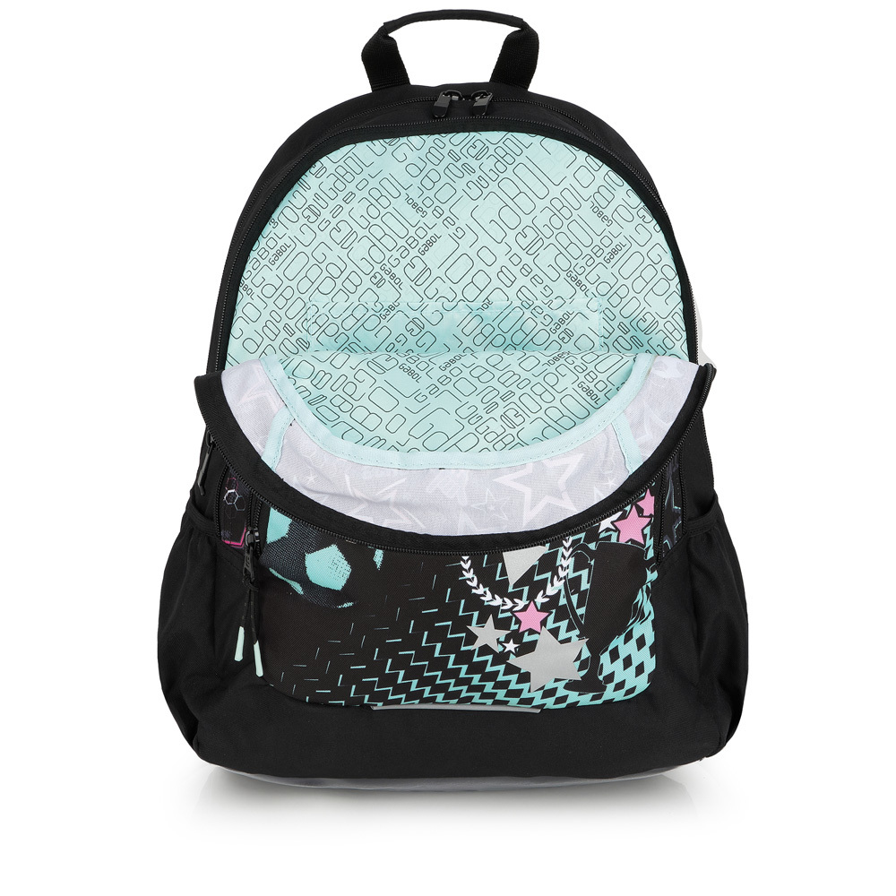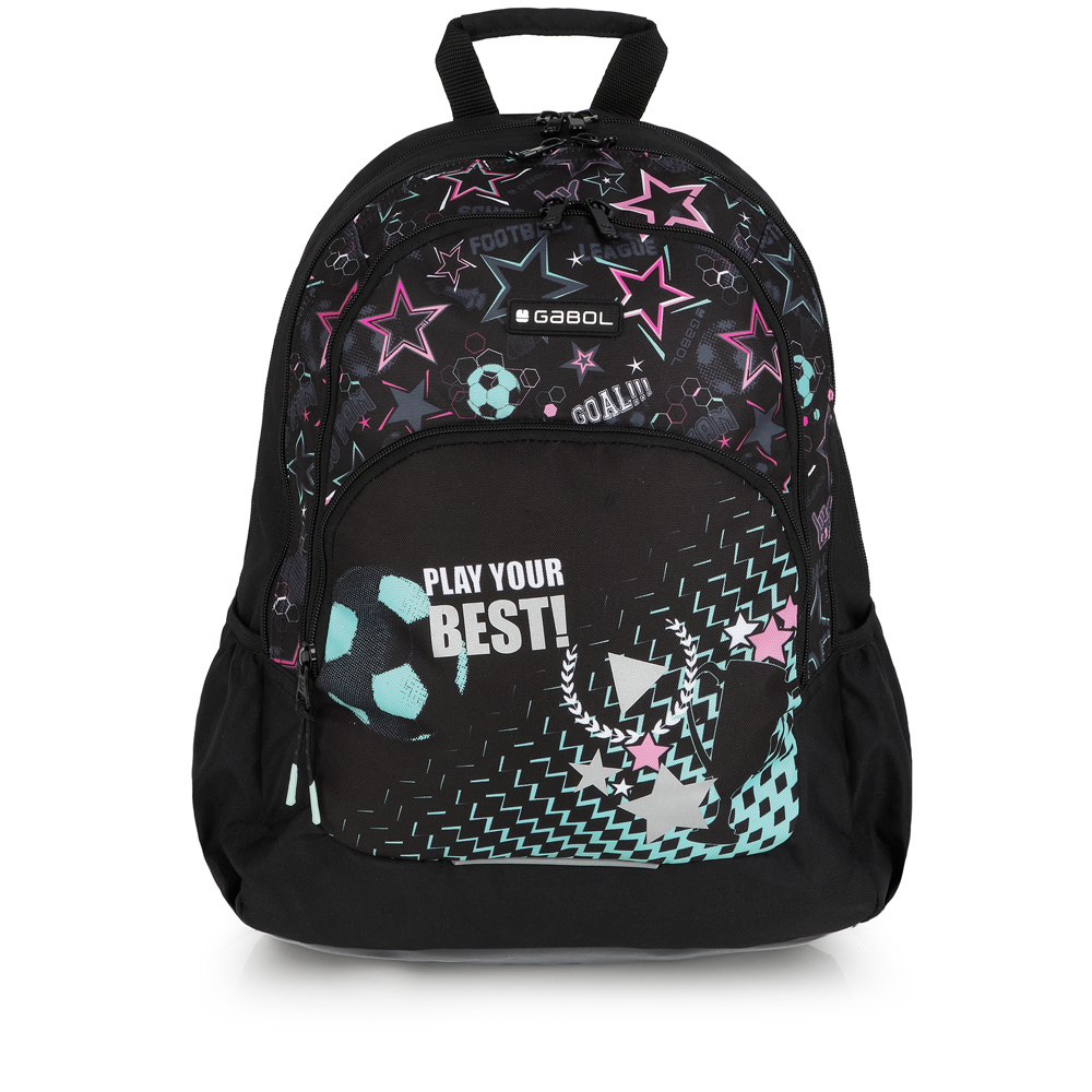 Fenomenalan dizajn privući će pažnju svim malim i velikim ljubiteljkama fudbala. Ranac je ergonomskog oblika, sa anatomskim leđima, velikim brojem pregrada i džepova, što obezbeđuje veoma dobru organizaciju školskog pribora i svih ostalih dnevnih potrepština. Izrađen je od vodootpornog materijala i veoma trajan. Rameni kaiševi su podesivi i mogu se pričvrsiti na grudima. Dno ranca je zaštićeno od kvašenja plastičnim materijalom. 1 ranac=više generacija!