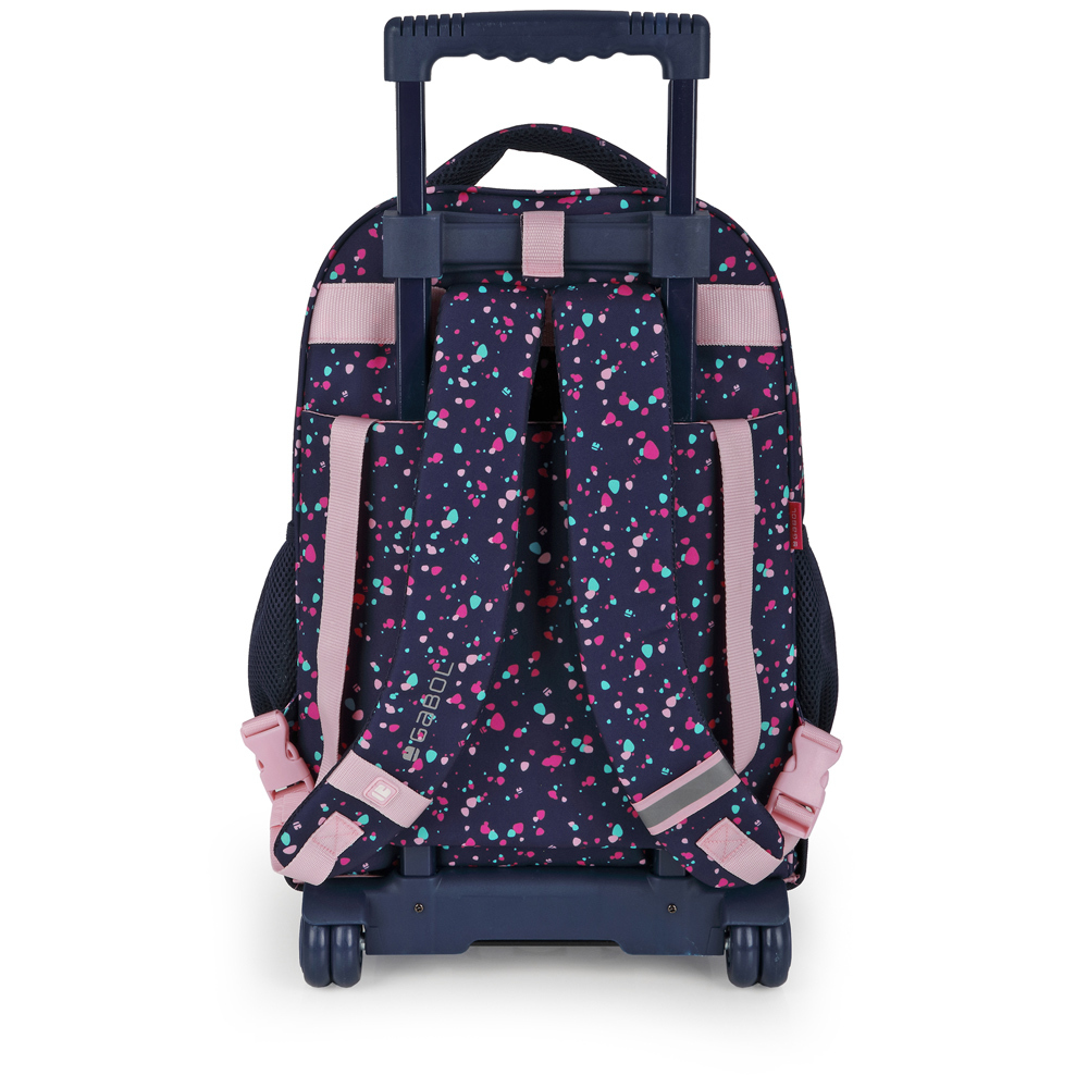 Najbolja Gabol inovacija do sada: ranac sa točkićima koji je moguće rasklopiti, što znači da se može koristiti kao klasičan ranac sa naramenicama ili kao troler sa teleskopskom ručkom i čvrstim točkićima. Kada se ovome doda njegova izuzetno mala težina od 1,8 kg sa točkićima ili manje od 600g samog ranca dobijate idealan ranac za polazak u školu. Savršen izbor za devojčice koje žele praktičnost, udobnost i prelep dizajn u jednom. Dimenzije ranca su prilagodjene školskim potrebama, sa prostranim glavnim odeljkom, i dva džepa sa prednje strane kao i bočnim mrežastim džepovima za flašicu ili sitnice. Dobro organizovana unutrašnjost i ojačana ledja i naramenice obezbedjuju udobnost kada se nosi na ledjima. Ranac krase zanimljive kombincije veselih boja. Izradjen je od izdržljivog, vodootpornog i lako perivog materijala, otporan na habanje. Pravi izbor za moderne i praktične školarce.