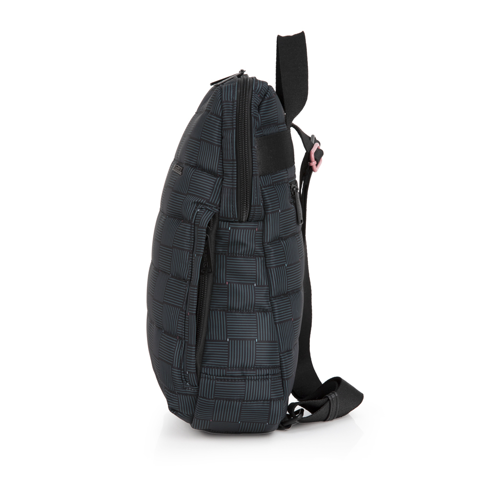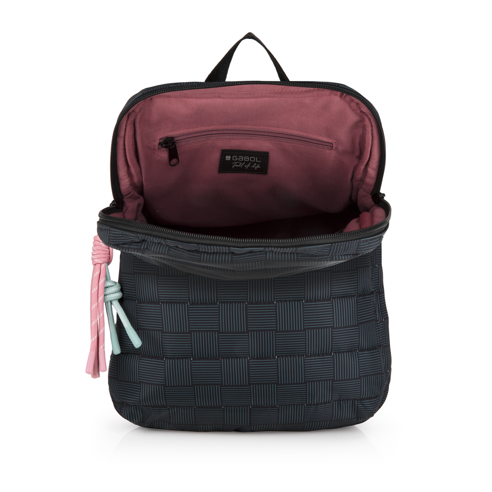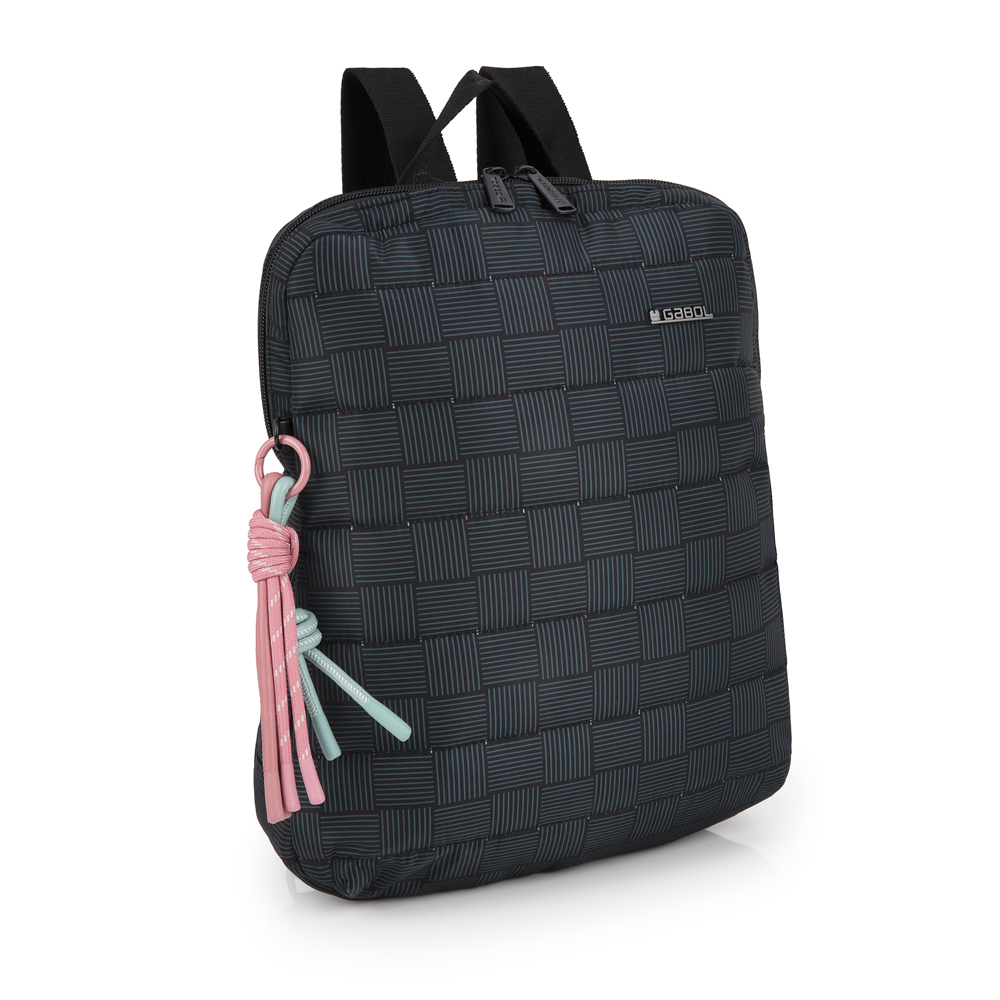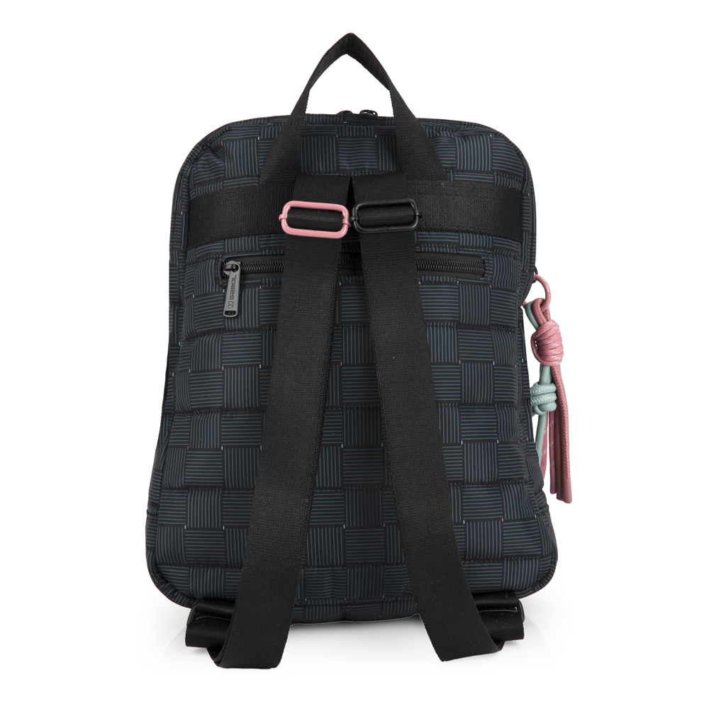 Ženski ranac Hanae je moderan ranac, interesantnog dizajna isprepletanih kockica. Ranac je izradjen od kvalitetnog poliestera, vodootpornog, PVC free materijala. Poseduje centralnu pregradu, koja je prostrana i ima unutrašnje džepove za bolju organizaciju svakodnevnih sitnica. Svaki ranac ima zakačaljku od pertli. Poseduje dodatnu ručku, pa ga osim na ledjima možete nositi i u ruci.