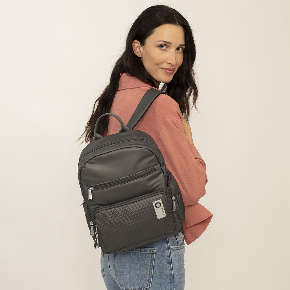 Fenomenalan model ranca sa ojačanim kaiševima iz kolekcije Judith, sa dodatnom ručkom za nošenje u ruci. Izradjen je od sintetičkog materijala, sa oznakom PVC free. Pored glavne pregrade sa zipom, poseduje dva džepa sa prednje strane, od kojih je donji džep idealan za odlaganje mobilnog telefona. Sa bočne strane se nalaze još dva dodatna džepa, idealna za vodu, termos sa kafom ili čajem. Sa zadnje strane postoji još jedan lažni džep, gde možete odložiti lična dokumenta i novac. Ovaj ranac predstavlja idealan model za sve generacije.