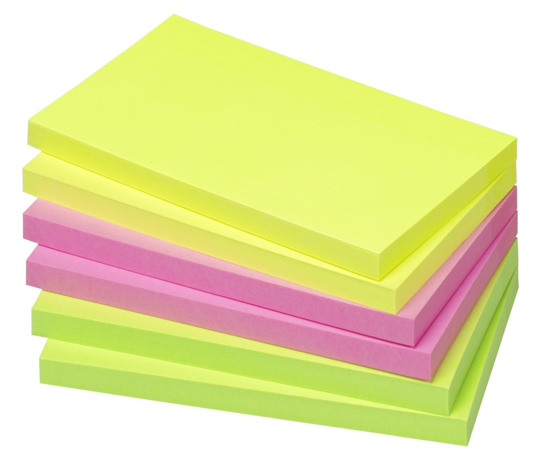 Samolepljivi blokovi za poruke, za svakodnevnu kancelarijsku i kućnu upotrebu. Spakovani po 6 komada u celofan. 2x žute, roze i zelena.