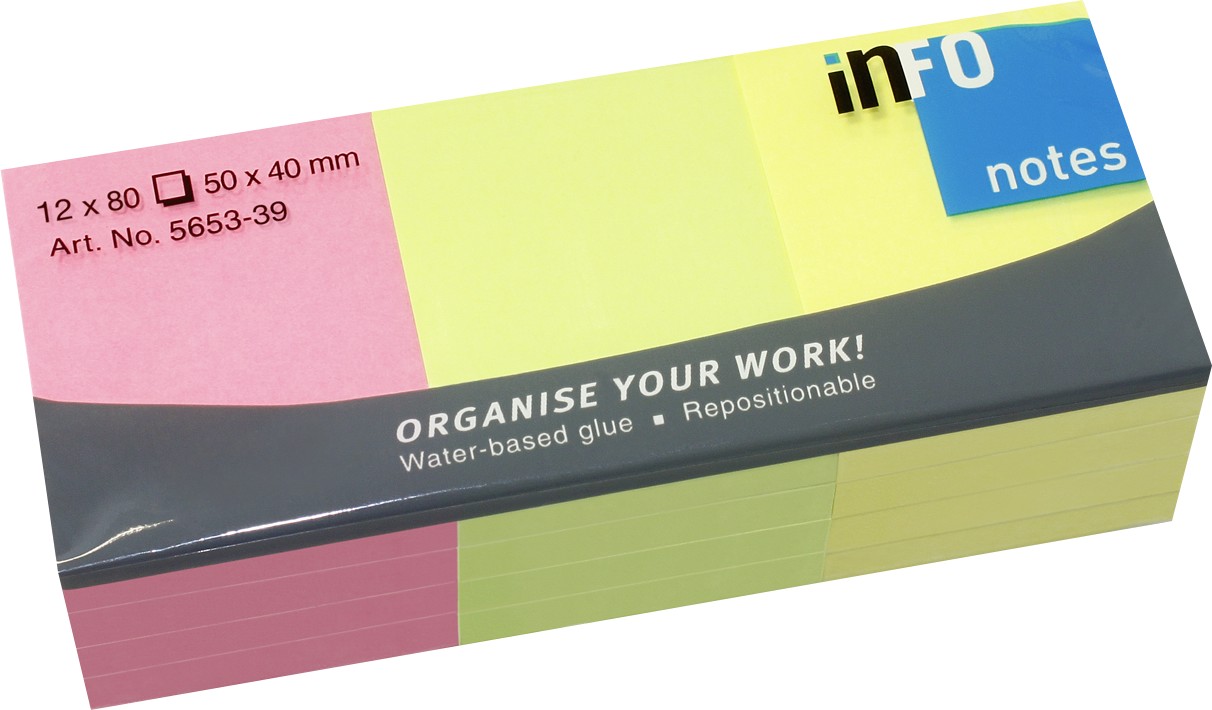 Samolepljivi blokovi za poruke, za svakodnevnu kancelarijsku i kućnu upotrebu. Pakovanje 12 komada.