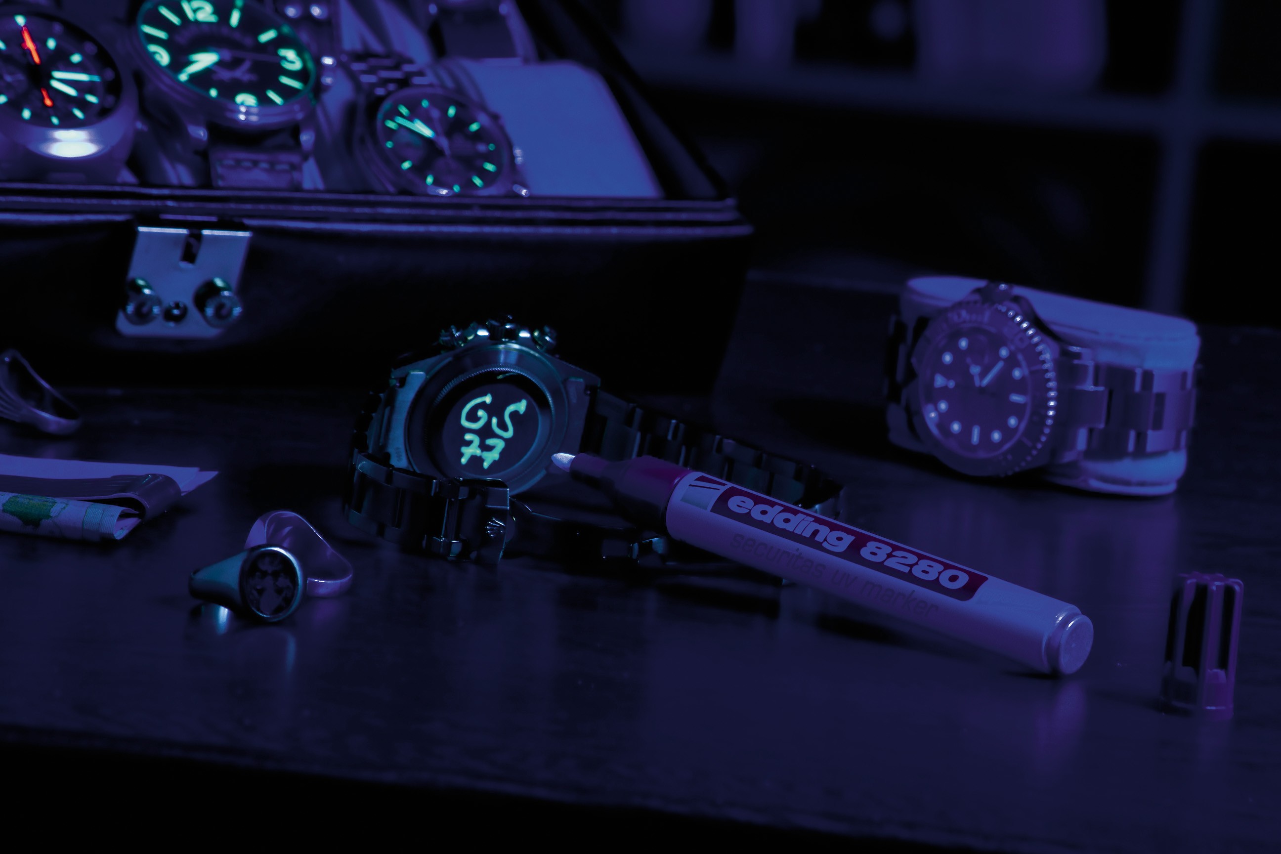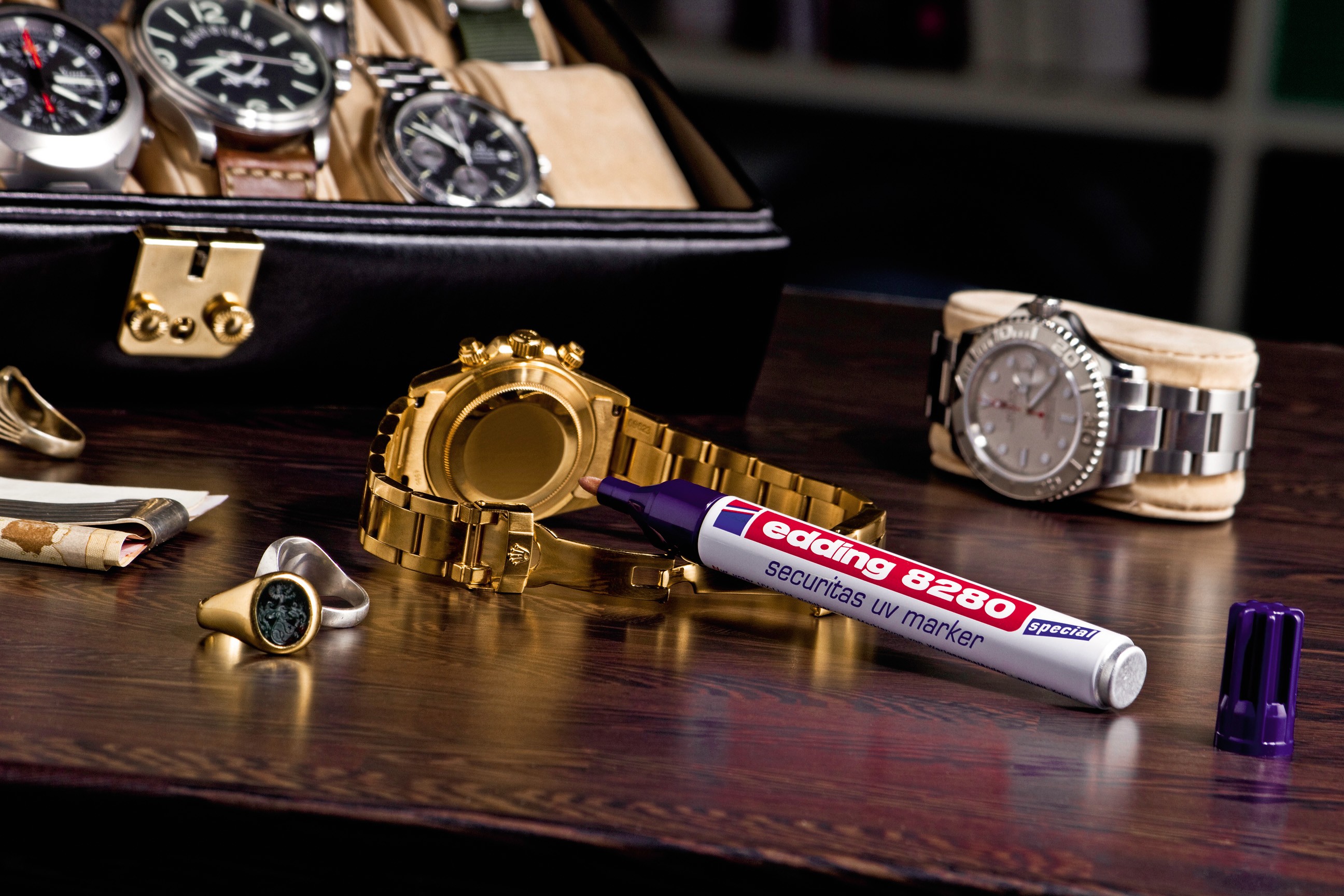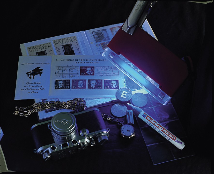 Mastilo koje se brzo suši lako je vidljivo pod UV svetlom. Idealan način za označavanje vrednih predmeta u sektoru zaštite od krađe i bezbednosti. Vodootporno mastilo otporno na habanje čini ovaj marker sigurnom opkladom za sigurnosno obeležavanje. Takođe dobro za nevidljivo obeležavanje lokacija i nevidljivo pisanje. Ovaj specijalizovani marker je proizveden u Nemačkoj i ima visokokvalitetno aluminijumsko telo.