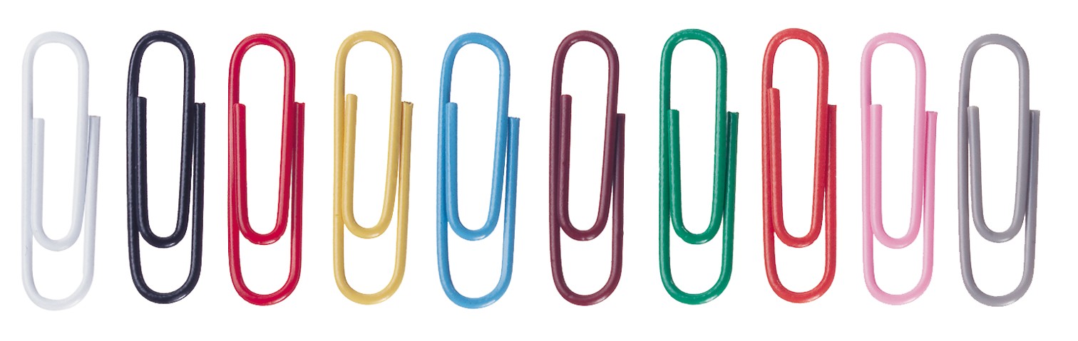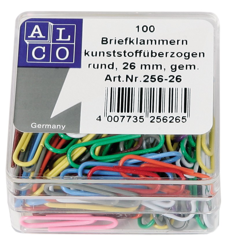 Plastificirane spajalice u boji, zaobljene. Pakovanja: po 100 kom.