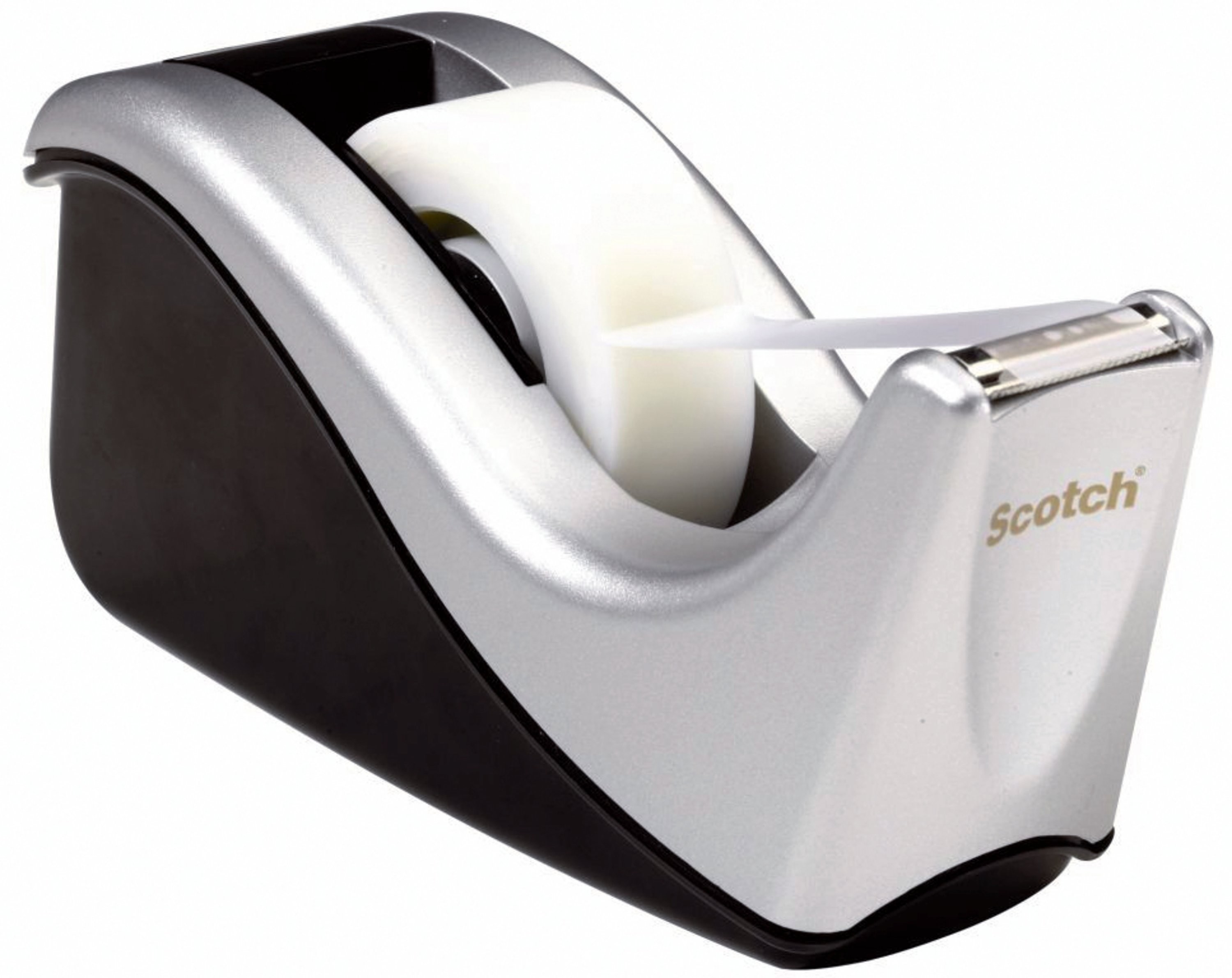 19 mm x 33 mDvobojni crno-srebrni stoni stalak elegantnog i savremenog dizajna za svakodnevnu upotrebu u kancelariji + 1 Scotch® Magic™ lepljiva traka. Inovativni fiksni nosač lepljive trake olakšava montiranje trake.