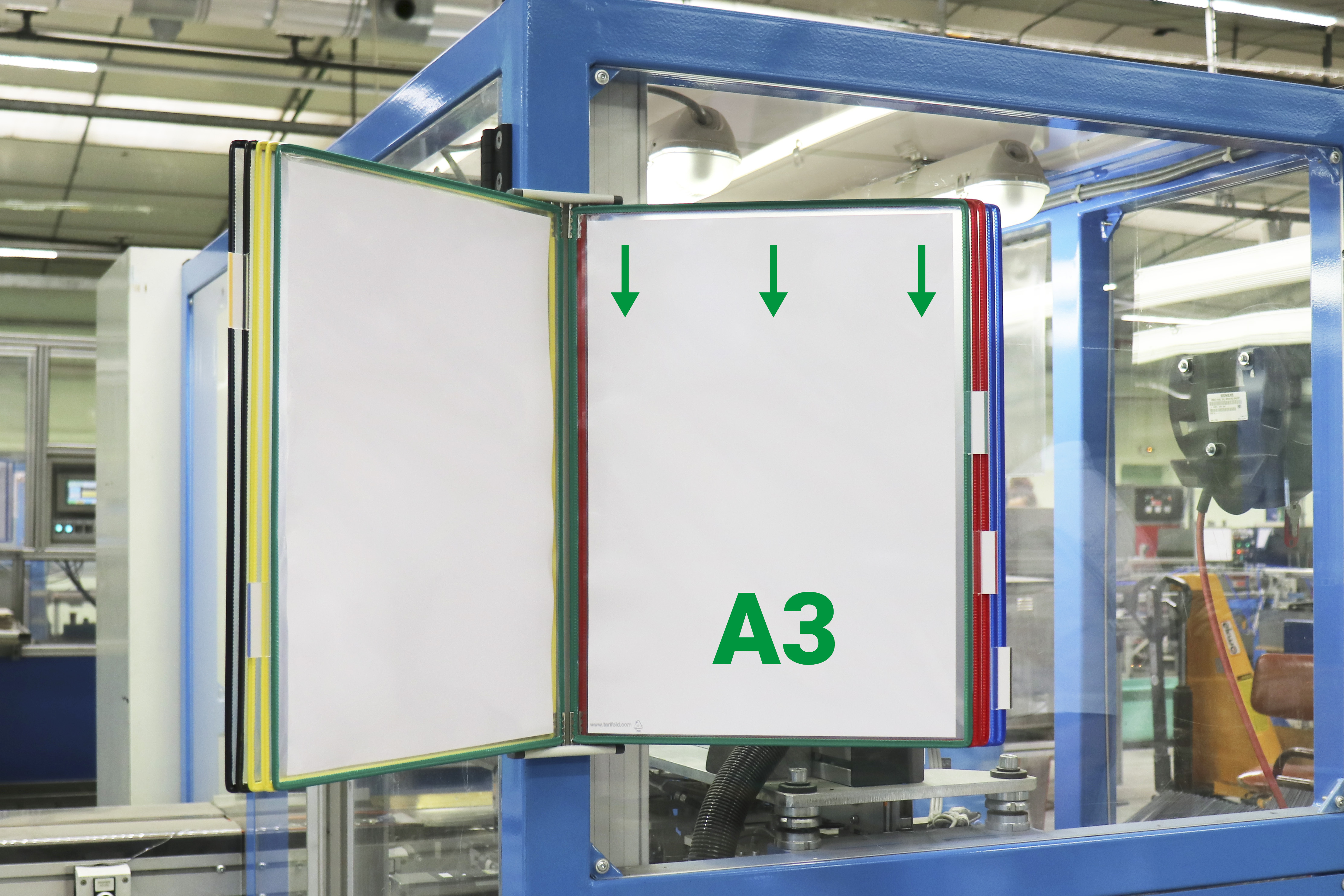 Zidni nosač napravljen od čelika sa 10 raznobijnih ramova A3 formata. Montira se na bilo koju vertikalnu površinu. Uključen i set za montažu.