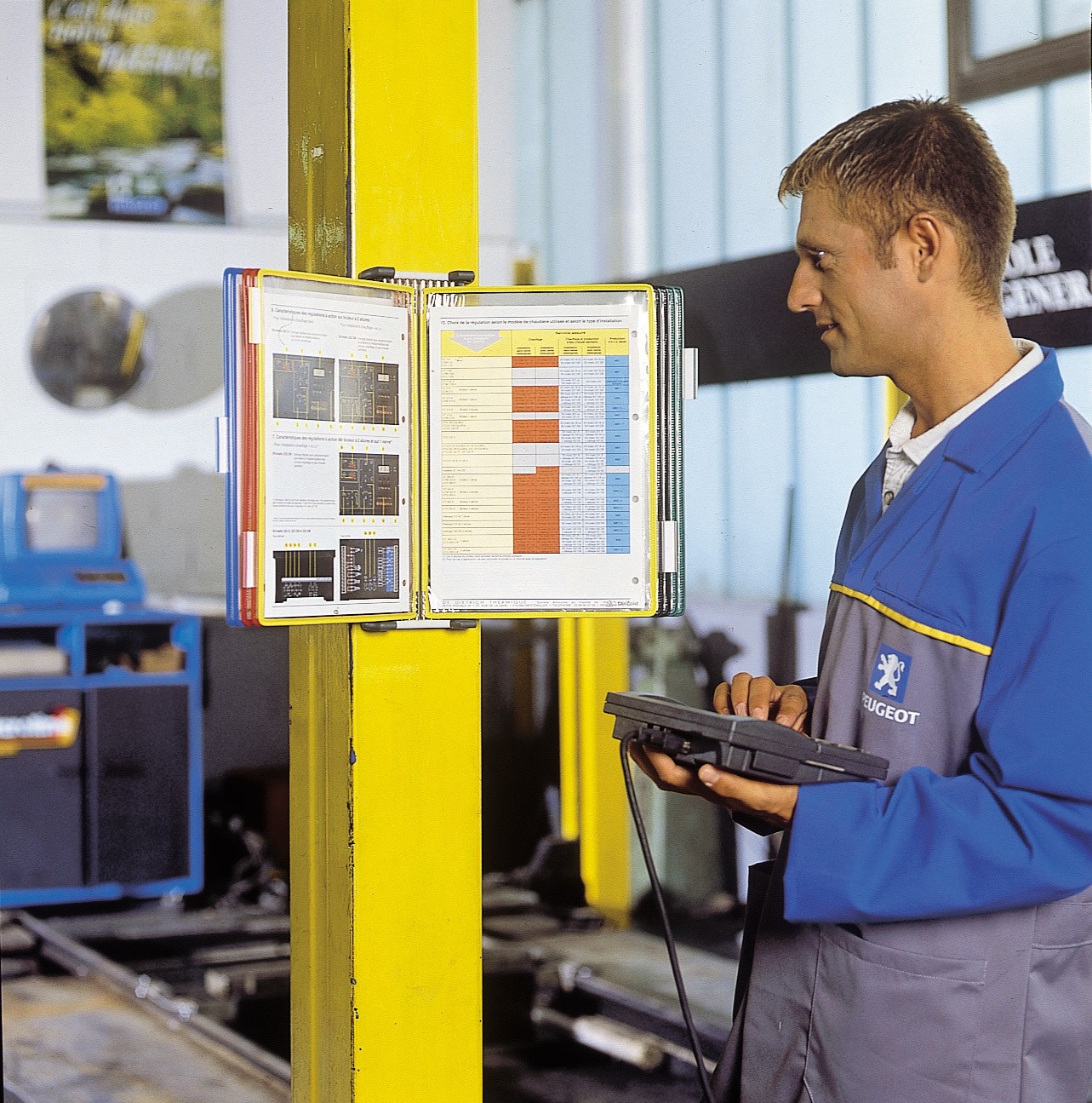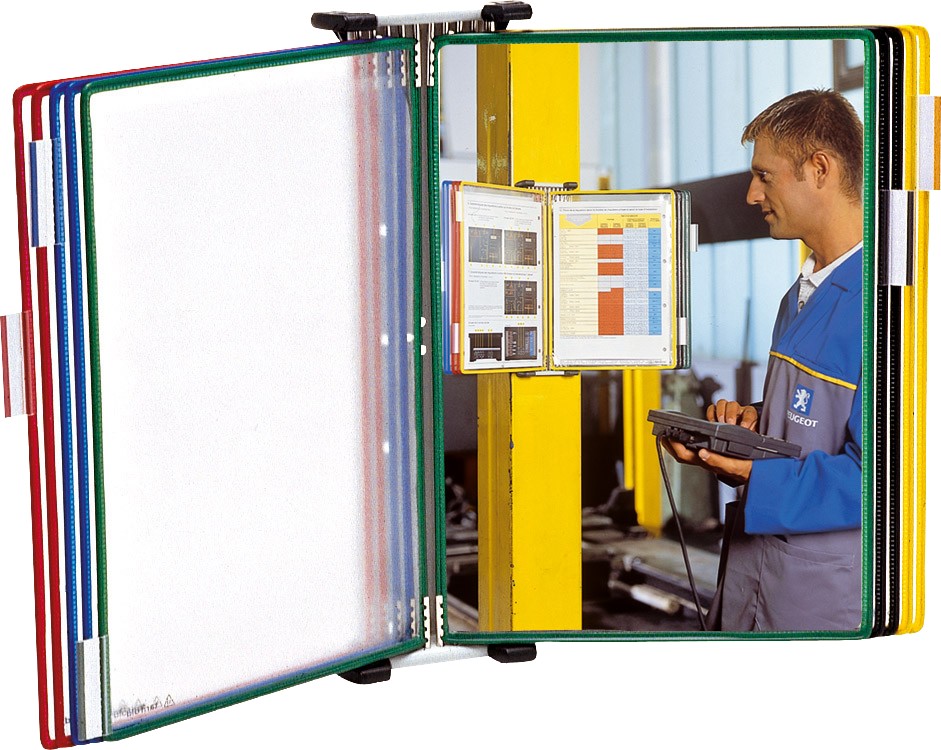 Zidni nosač napravljen od čelika sa 10 raznobijnih ramova A4 formata. Montira se na bilo koju vertikalnu površinu. Uključen i set za montažu. Jednostavno se proširuje dodavanjem više identičnih nosača. Dostupan i u drugim formatima.