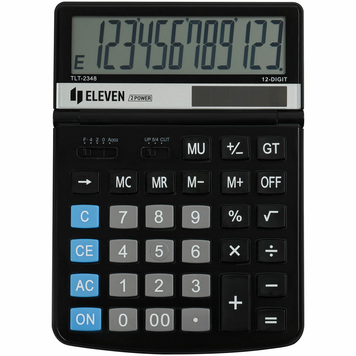 Stoni kalkulator sa ekranom čiji ugao se može podešavati: 12-cifreni displej, 4 memorijska tastera: MC, MR, M +, M-, Mar up cena [MU], kvadratni koren, Change [+/-], delete, decimal selector, procenat [%] , birač zaokruživanja, dvostruka nula [00], dvostruko napajanje: baterija i solarno.