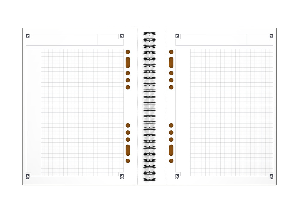 Laminirana, tvrdi povez, izdržljiva - u grafitno sivoj boji, pruža odličnu zaštitu za beleške i savršena je za vođenje beleški dok stojite. Sadrži informacije o međunarodnim pozivnim brojevima i vremenskim zonama, kao i savete na deset jezika. Stranice imaju dvostruke margine i zaglavlja, za efikasno beleženje napomena i naslova na stranicama. Stranice su bušene i perforirane za lako odlaganje u registrator/klaser. Rukopis se ne vidi sa suprotne strane. Crna dvostruka spirala omoguc´ava da se notebook otvori za 360°.
