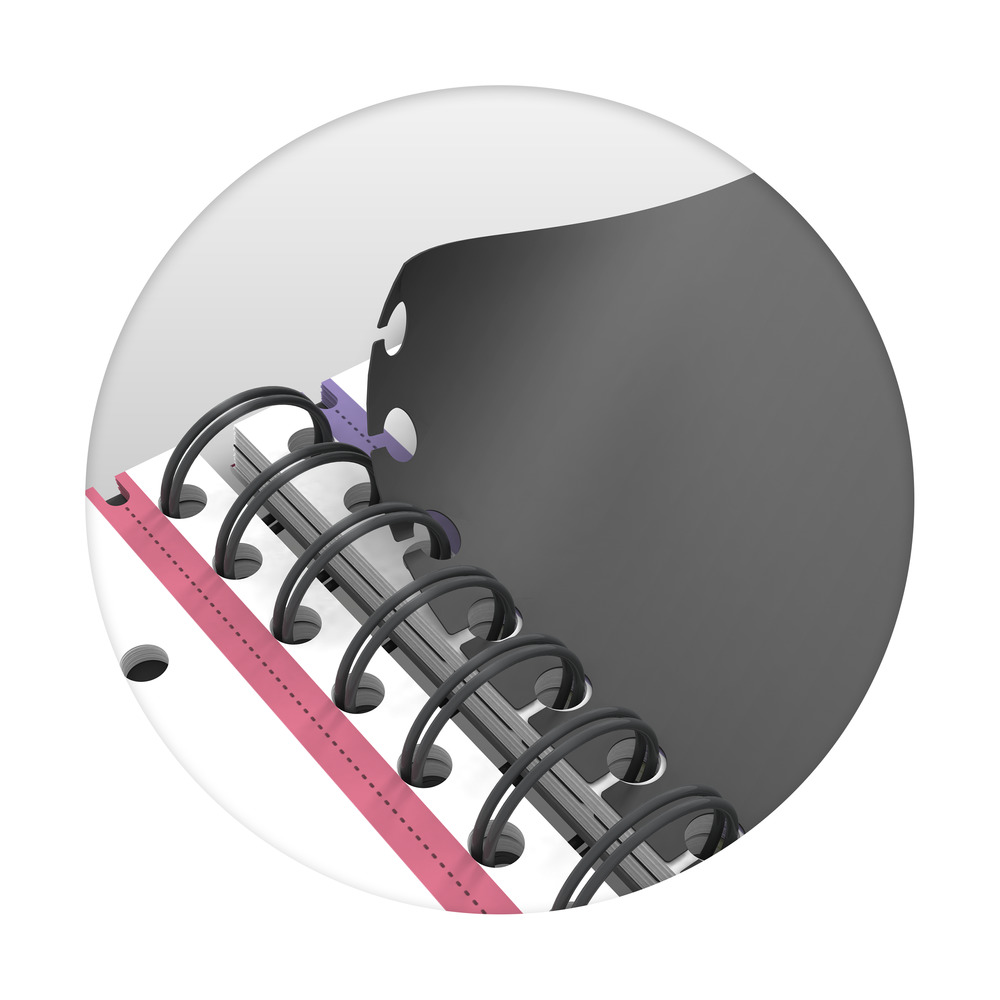 Office Essentials sveska sa tvrdim koricama i duplom spiralom formata A4+ savršena je za upravljanje projektima. Sveska je podeljena na 4 različito obojene sekcije i ima tri polipropilenska obeleživača strana, kao i jedan dodatni separator, koji vam omogućavaju da odvojite beleške iz vaših različitih projekata. Stranice su bušene i perforirane za lako odlaganje u registrator / klaser. Stranice se lako cepaju po perforaciji. Dostupna u četiri boje: Lavander Blue, Cherryy, Aniseed Green, Grey. Snežno beli i glatki Optik 90g papir. Rukopis se ne vidi sa suprotne strane.