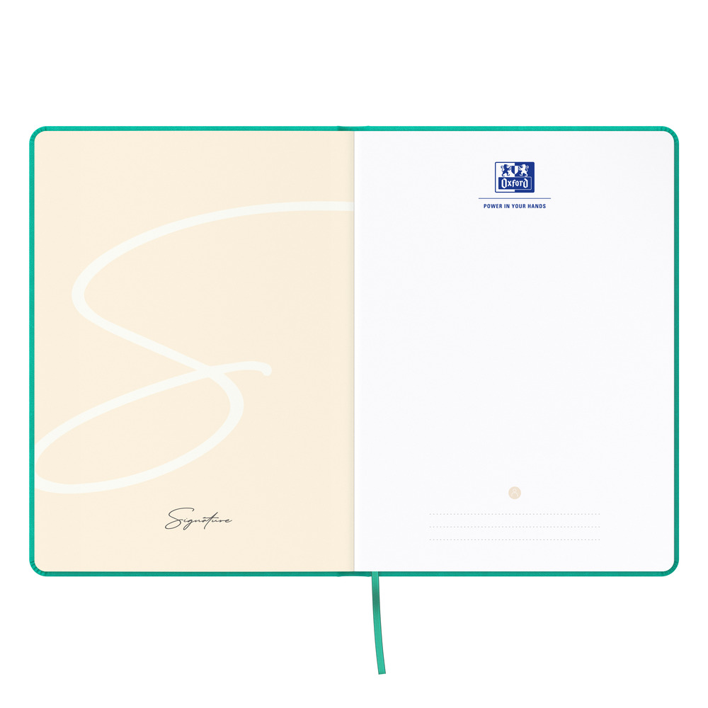Kolekcija Signature A5 formata je jedinstvena beležnica sa veoma elegantnim, profesionalnim izgledom. Elegantne, tvrde korice od ekološke kože glatke površine. Sadržaji kao što su unutrašnji džep za dokumente, gumica za zatvaranje i traka za označavanje stranica čine ove sveske nezamenljivim za poslovne sastanke. Širok spektar pastelnih boja je još jedna karakteristika koja ih čini atraktivnim. Snežno beli i glatki Optik 90g papir. Rukopis se ne vidi sa suprotne strane.