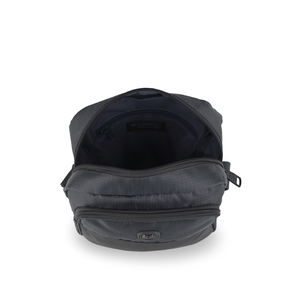 Moderna, lako uklopiva torbica većih dimenzija izrađena od kombinacije vodonepropusnog platna i materijala koji je presvučen zaštitnim gumiranim slojem. Sa prednje strane torbice je izdvojena pregrada koja se zatvara zipom.