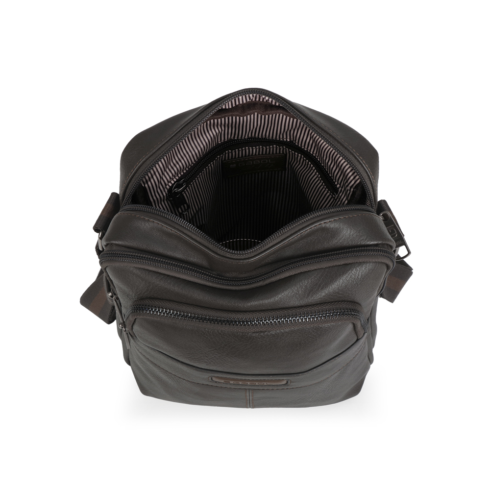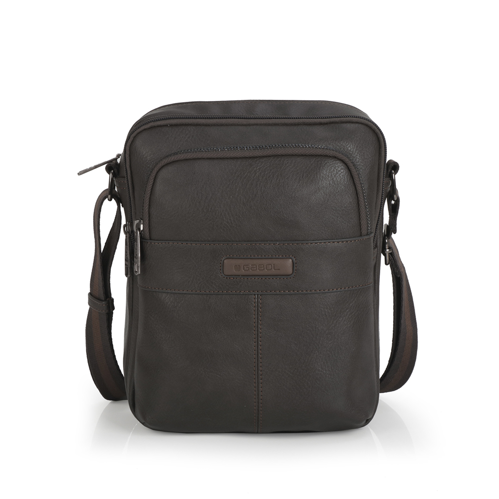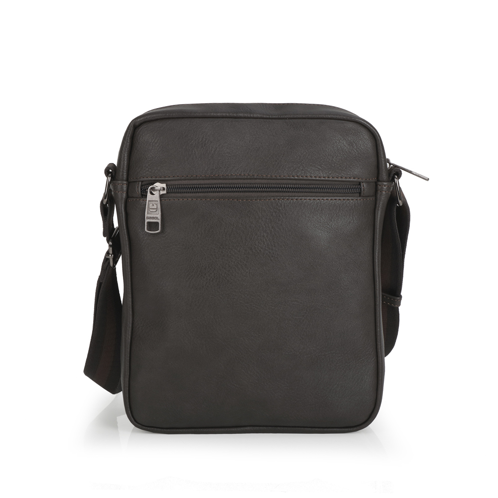 Moderna muška torba od sintetičke kože na rame. Sve pregrade su zaštićene kvalitetnim metalnim zip sistemom,dok je unutrašnjost opšivena kvalietnom postavom. Diskretni džep sa prednje i zadnje strane se takođe zatvara zipom. Dimenzije 20 x 25 x 8 cm.