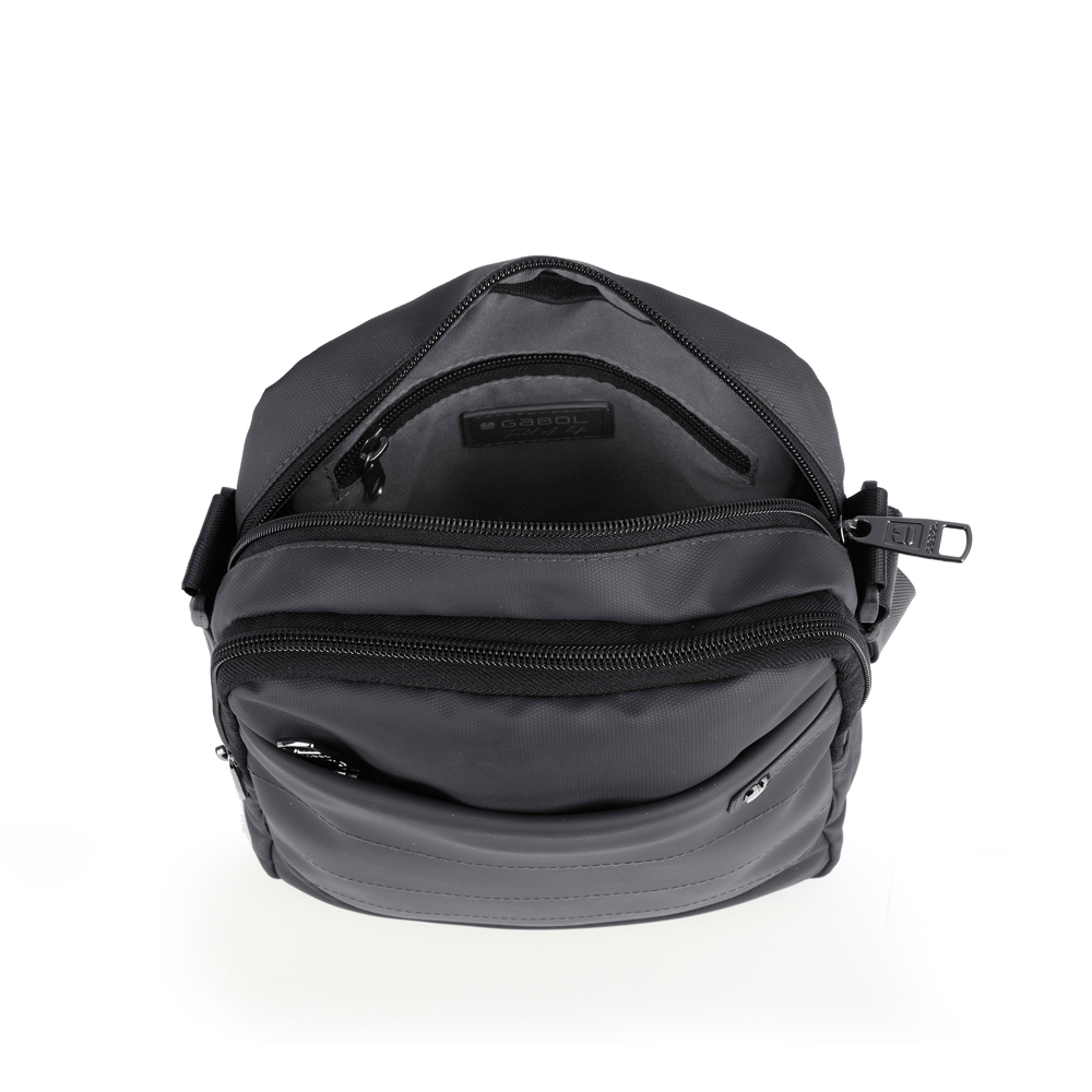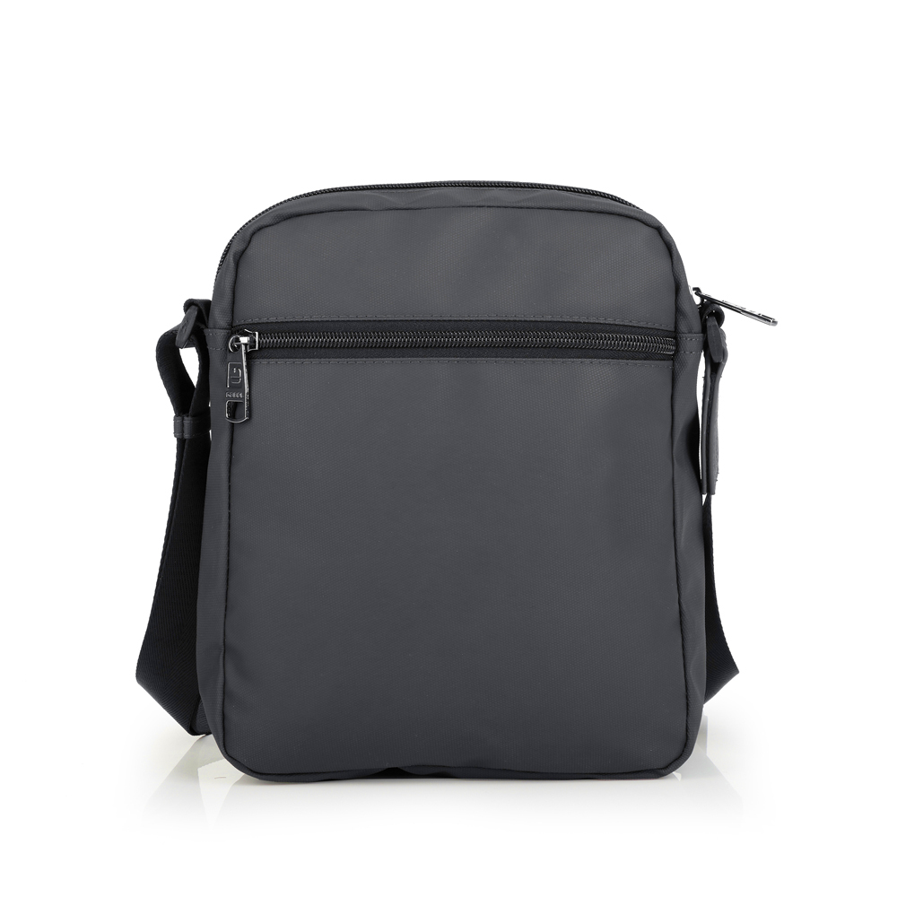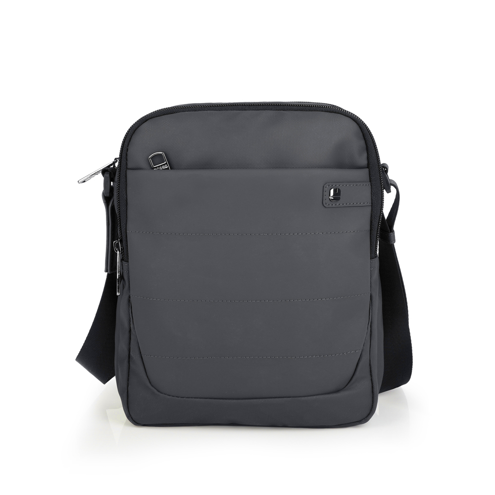 Muška torba modernog dizajna većih dimenzija.Izradjena je od kombinacije poliestera i eko kože, PVC free materijal. Krasi je mnoštvo pregrada, tako da je idealna za svakodnevnu upotrebu, u glavnu i najveću pregradu možete odložiti tablet do 8". Na prednjoj strani se nalazi posebna pregrada i dodatni skriveni džep, za odlaganje ključeva, kartica, dokumenata.Sa zadnje strane se nalazi dodatni džep, sve pregrade se zatvaraju pomoću zipa.