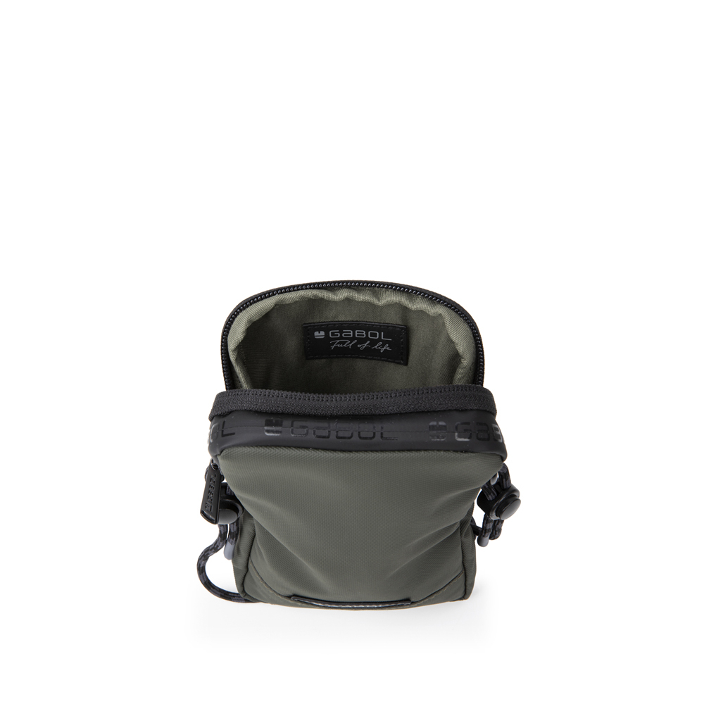 Mini model torbice modernog dizajna u maslinasto zelenoj boji.Izrađena od poliestera, materijala sa oznakom PVC free. Lako uklopiva uz bilo koju odevnu kombinaciju. Savršena za šetnju, a idealna je i za putovanja, jer će najbitnija dokumenta kao i mobilni telefon biti na sigurnom. Unutar torbice se nalazi izdvojena pregrada za sitnice. Atraktivni dvostruki učkur u sivo-crnoj boji za nošenje preko ramena, čini je idealnim odabirom za jesenju sezonu.