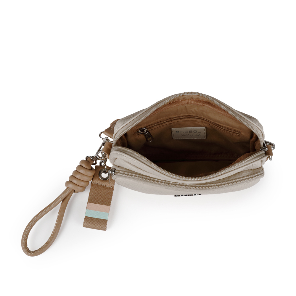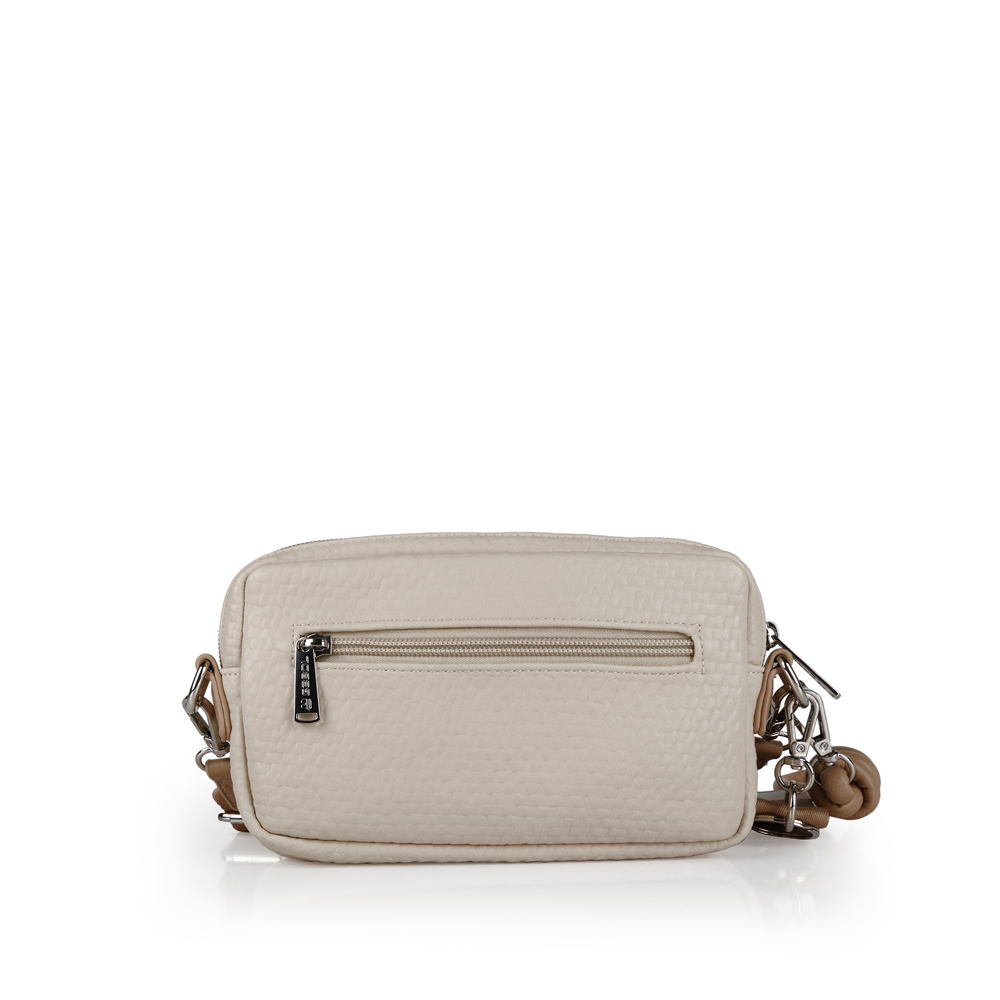 Kompaktna, ali sa dovoljno prostora za osnovne stvari, poput telefona, ključeva, novčanika... Prava prolećna torbica za laganu šetnju, stilski lako uklopiva. Izrađena od industrijske kože. Poseduje učkur za nošenje oko zgloba ili u ruci, kao i klasičan kaiš za preko ramena.