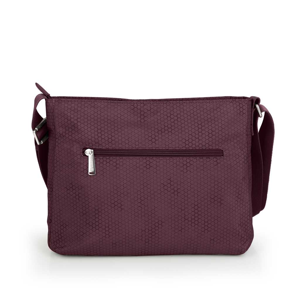 Sportsko-kežual torba, u trendi jesenjoj bordo boji, sa kaišem preko ramena i dekorativnim priveskom izradjenim od šarenih pertli. Torba ima idealnu organizaciju: dva prednja džepa, jedna glavna pregrada sa unutrašnjim malim odeljkom, sa zadnje strane se nalazi još jedan dodatni džep, svi sa zip zatvaranjem. Izradjena je od vodootpornog poliestera, sa oznakom PVC free. Sa ovim modelom bićete u trendu ove jeseni.