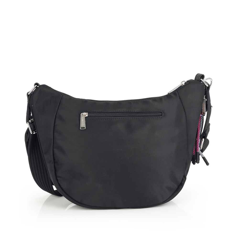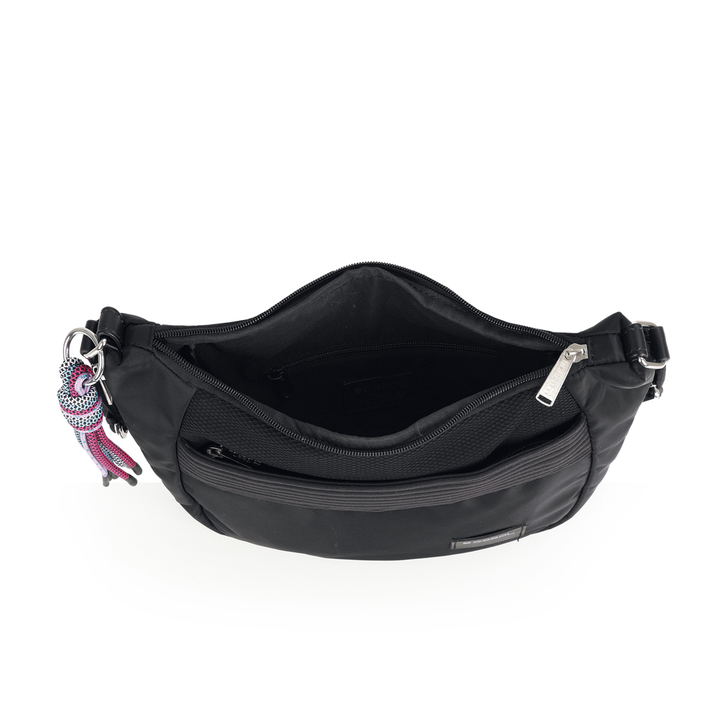 Ženska tašna Aroa je torba srednje veličine sa modernnim dizajnom. Pored glavne prostrane pregrade, sa bočne strane se nalazi dodatni zip, čijim otvaranjem dobijate za 4 cm veći unutrašnji prostor. Sa prednje strane se nalazi džep, idealan za mobilni telefon ili ključeve. Unutrašnji džep garantuje bezbednost vaših sitnica. Poseduje i podesiv kaiš sa zanimljivim priveskomm, tako da može da se nosi preko ramena ili crossbody,pružajući praktičnost i udobnost. Izradjena od kvalitetnog PVC free materijala.