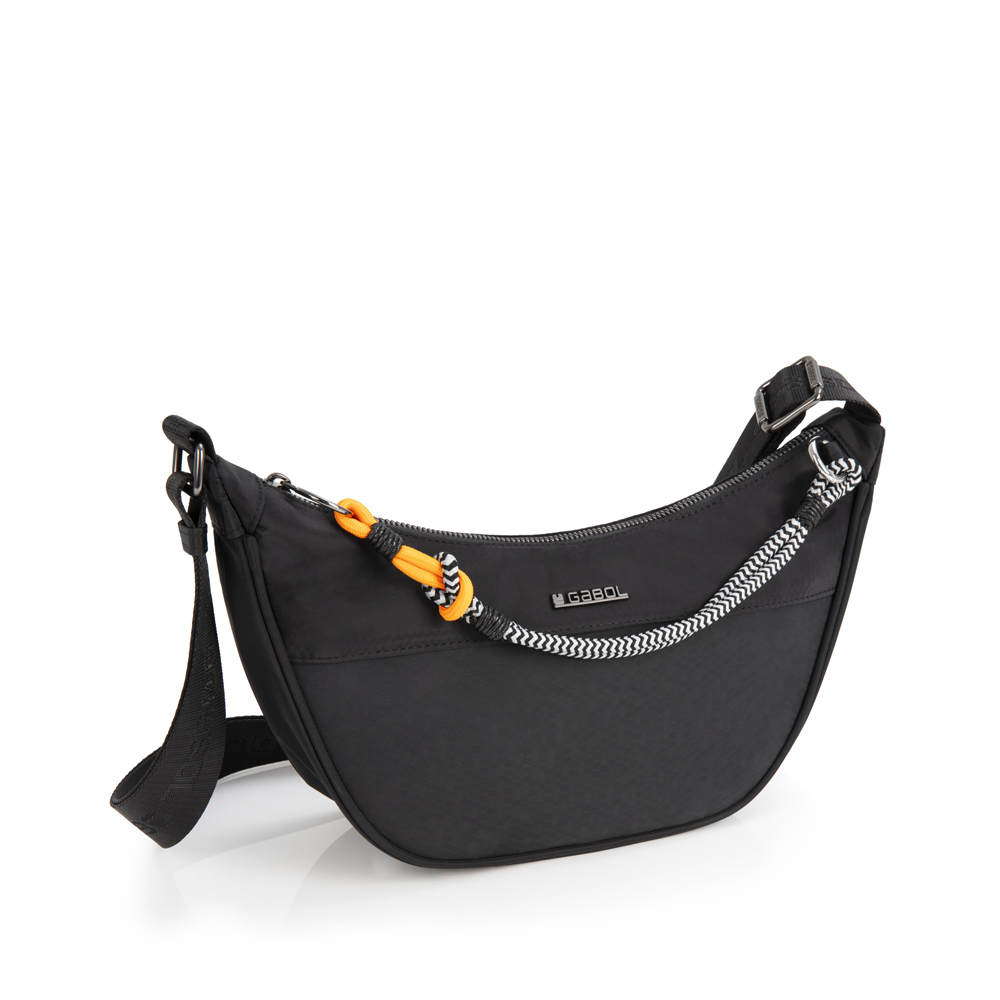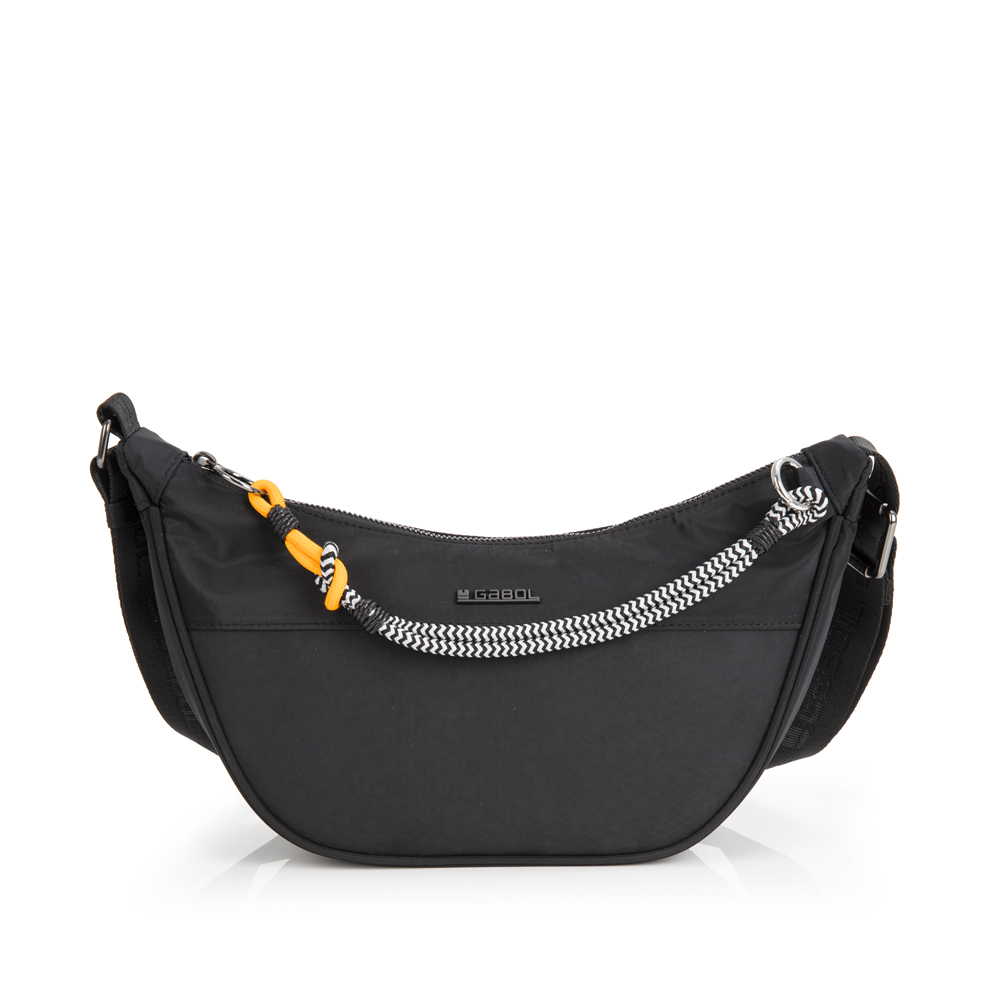 Najnoviji model Gabol ženske torbe u obliku čamca, izradjen je od kombinacije sintetičke kože i sintetičkog poliestera, materijal sa oznakom PVC free. Svaka torba ima atraktivni privezak od zebrastih pertli, sa narandžastim detaljima. Poseduje jednu glavnu pregradu u kojoj se nalazi i dodatni unutrašnje džep. Sa zadnje starne se nalazi dodatni džep koji je idealan za svakodnevne sitnice.