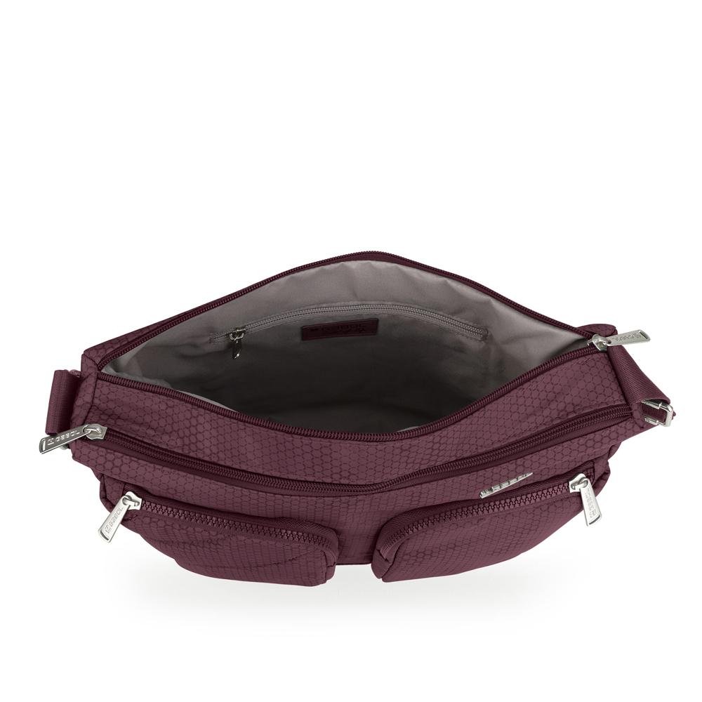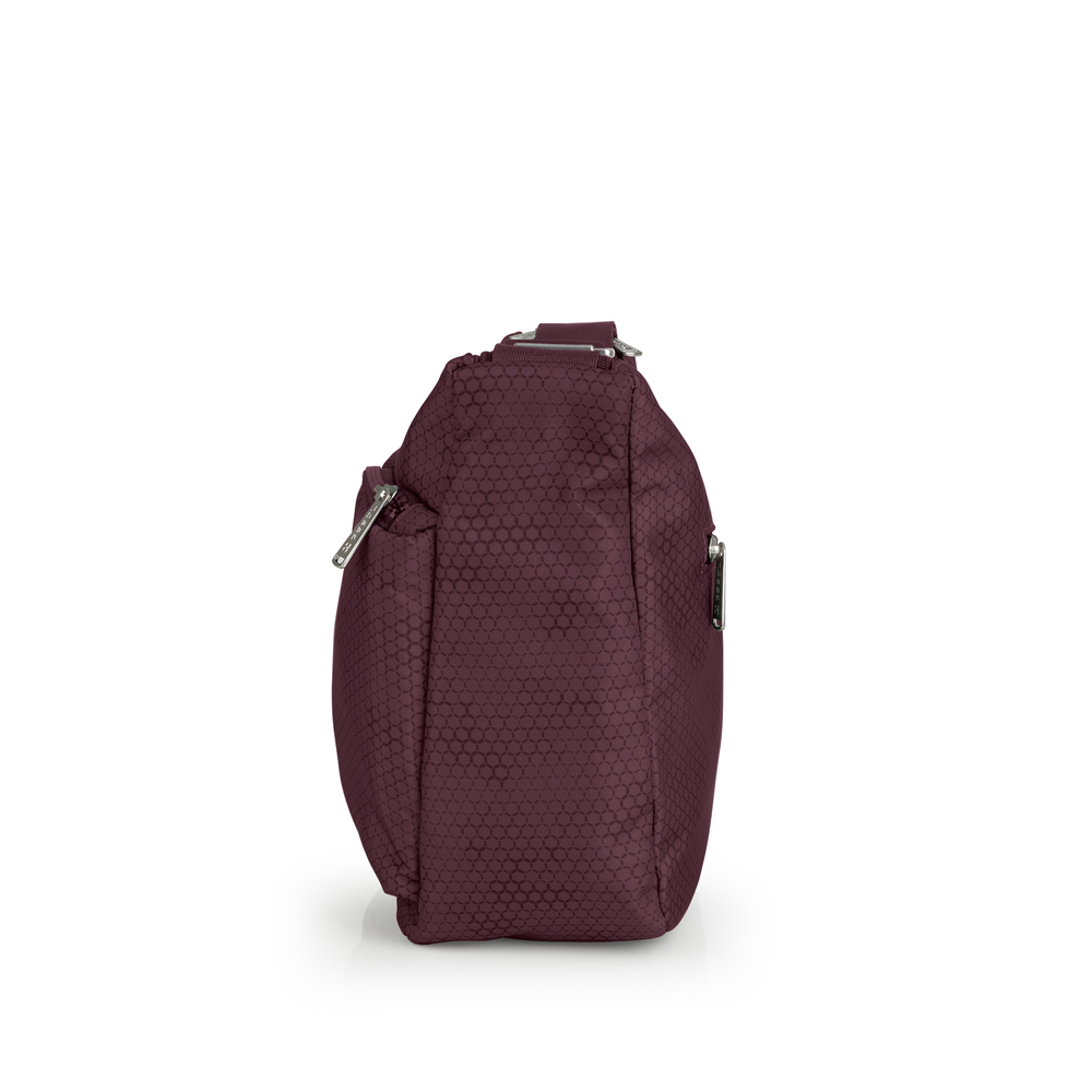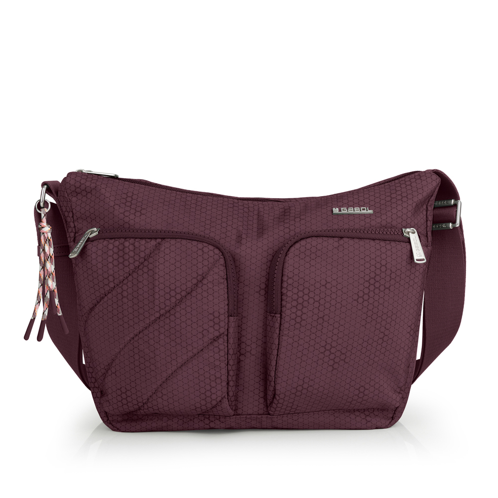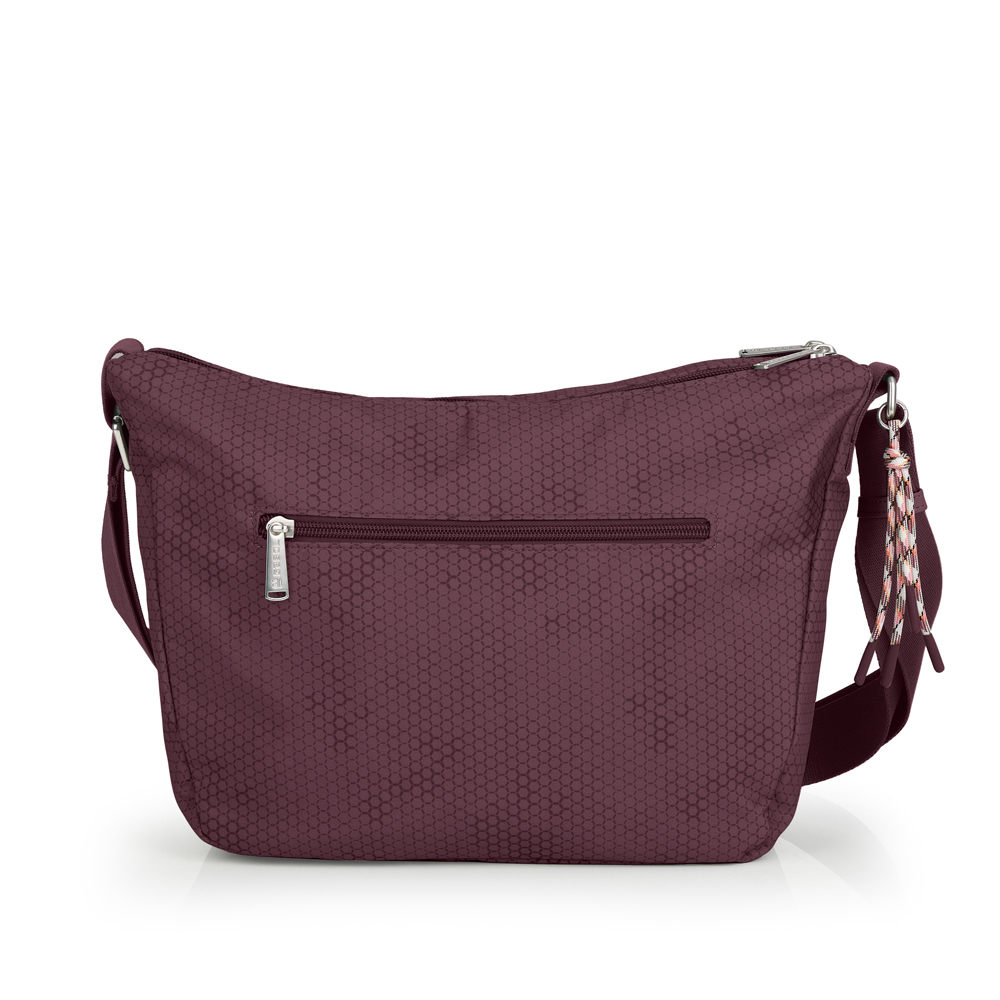 Kompaktna, sportsko-kežual torba, u trendi jesenjoj bordo boji, sa kaišem preko ramena i dekorativnim priveskom izradjenim od šarenih pertli. Organizacija je odlično odradjena: dva prednja džepa, dve glavne pregrade od kojih jedna poseduje unutrašnji mali odeljak, sa zadnje strane još jedan dodatni džep, svi sa zip zatvaranjem. Izradjena je od vodootpornog poliestera, sa oznakom PVC free. Odlična organizacija je čini idealnim modelom za ovu sezonu.