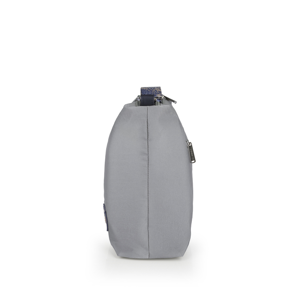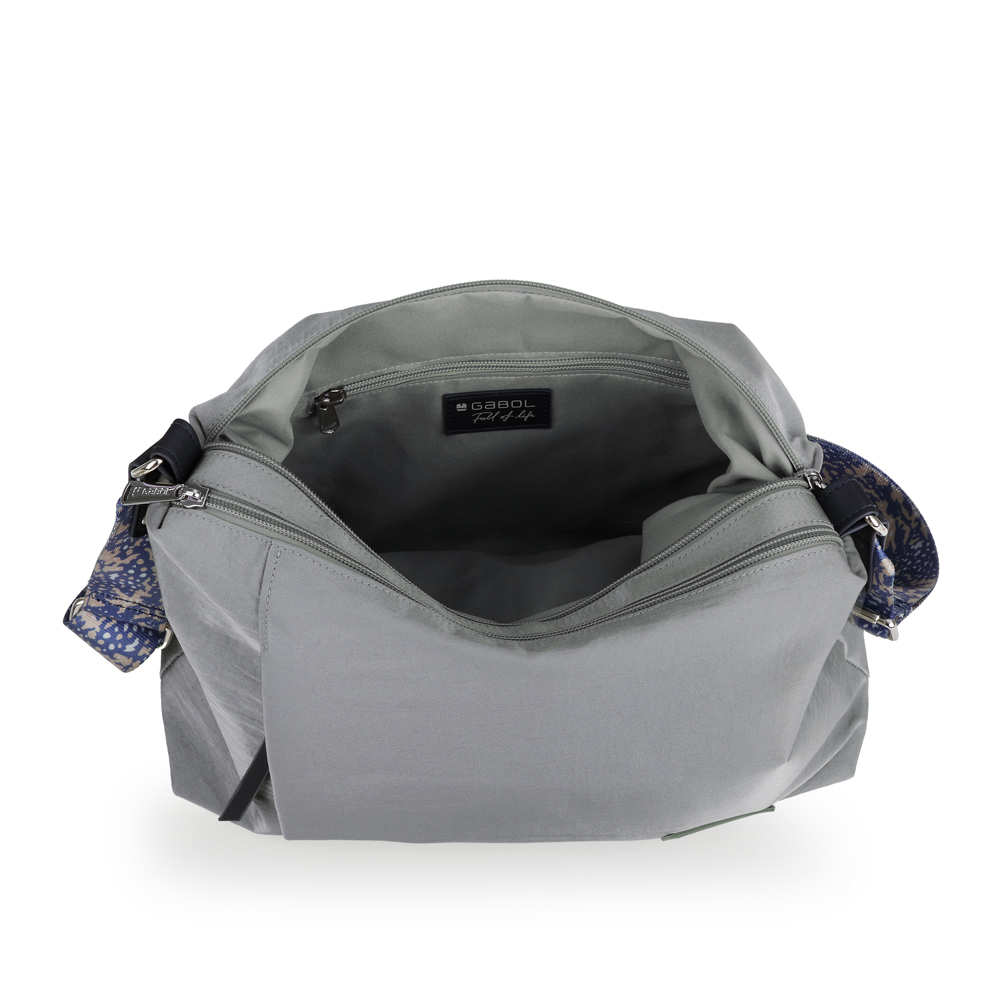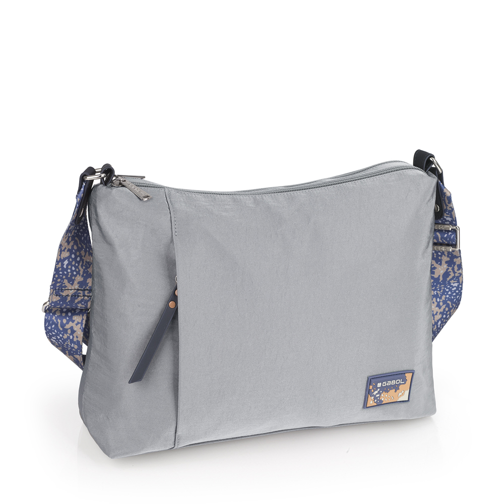 Kompaktna torba, idealne veličine, oblika trapeza, sa dekorativnim kaišem preko ramena, interesantnog dizajna. Napravljena od kombinacije materijala, vodootpornog najlona i sintetičke kože, sa oznakom PVC free. Ima dve centralne pregrade, od kojih jedna poseduje dodatni unutrašnji džep. Na prednjoj strani se nalazi skriveni džep i bedž sa prepoznatljivim Gabol logom. Sa zadnje strane se nalazi još jedan dodatni džep, idealan za odlaganje svakodnevnih sitnica.
