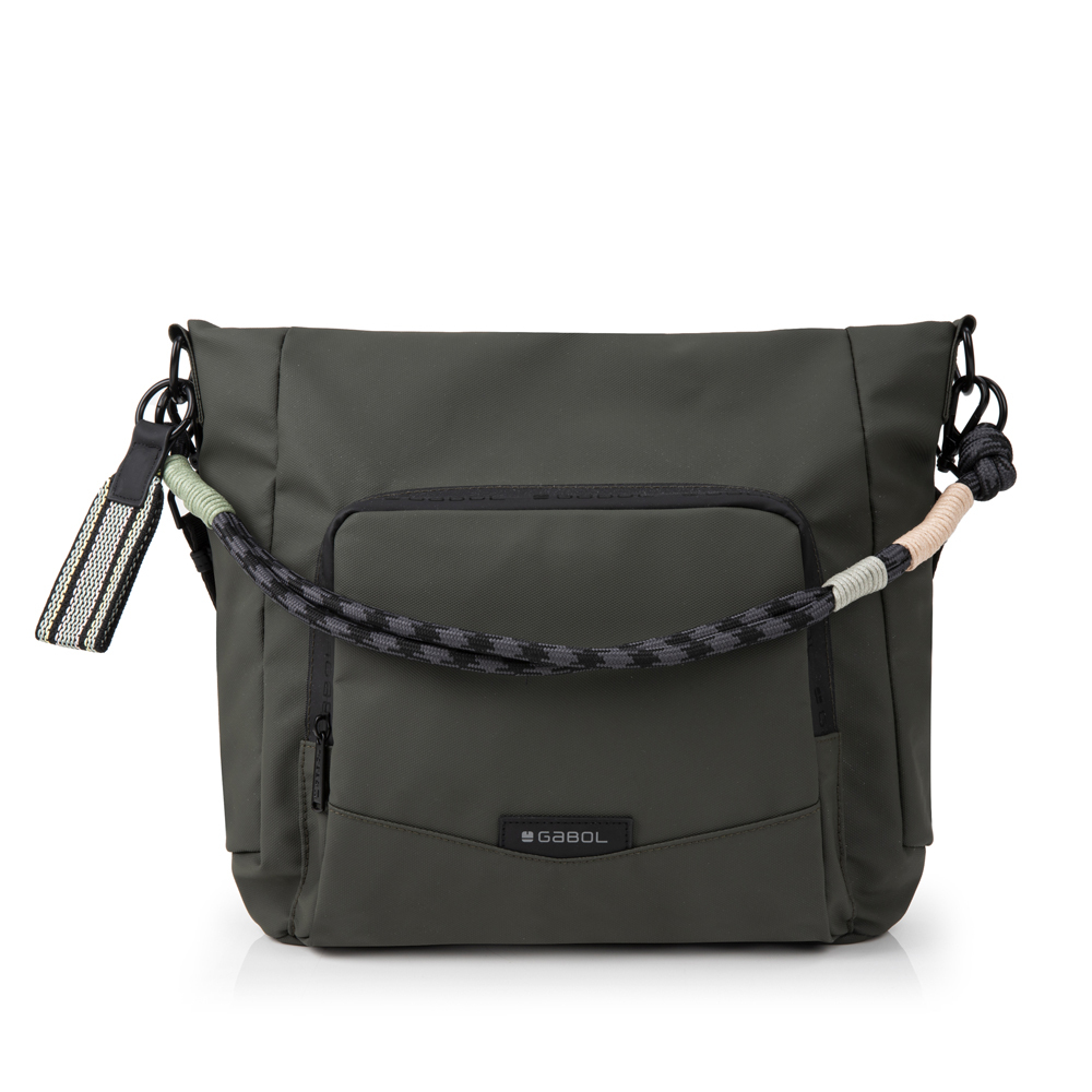 Velika ženska torba za svakodnevnu upotrebu. Izradjena od poliestera, bez PVC primesa, koji osigurava dugotrajnost i lako održavanje. Sadrži jednu glavnu pregradu, sa dodatnim unutrašnjim džepom za bolju organizaciju vaših stvari. Sa prednje strane se nalazi dodatni džep u koji možete smestiti lična dokumenta, ključeve, telefon i druge svakodnevne sitnice. Sa zadnje strane se nalazi dodatni džep koji se zatvara zipom. Svaka torba ima kaiš za nošenje preko ramena, ali i dodatnu ručku izradjenu od duplog učkura u sivo-crnoj boji, sa pastelnim detaljima. Uz svaku torbu se dobija i dekorativni, vezeni privezak.