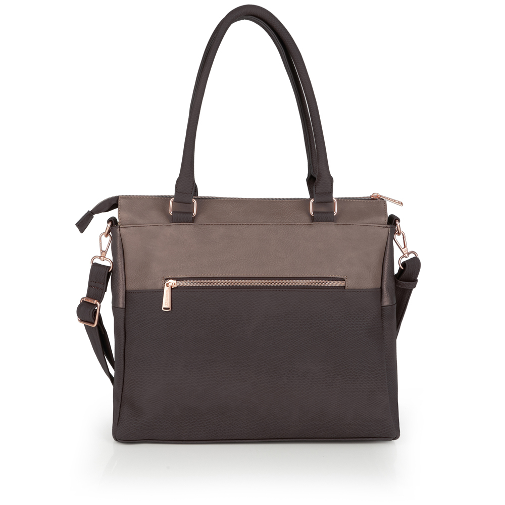 Torba Thelma iz Gabol kolekcije je moderna i prostrana torba koja kombinuje stil, sa bež-braon kombinacjom boje i funkcionalnost. Sa velikim untrašnjim prostorom idealna je za organizovanje različitih stvari kao što su laptop, dokumenta i lične potrepštine. Takodje poseduje dva džepa sa prednje strane i jedan sa zadnje.Ima dugi kaiš i katke rukohvate koji omogućavaju nošenje preko ramena. Njen dizajn je elegantan, što je čini pogodnom za svakodnevnu upotrebu i poslovne prilike. Torba je savršena za sve koji traže poslovni i sofisticiran aksesoar. Dimenzije 39x30x10 cm, 8,8 -0,6 kg