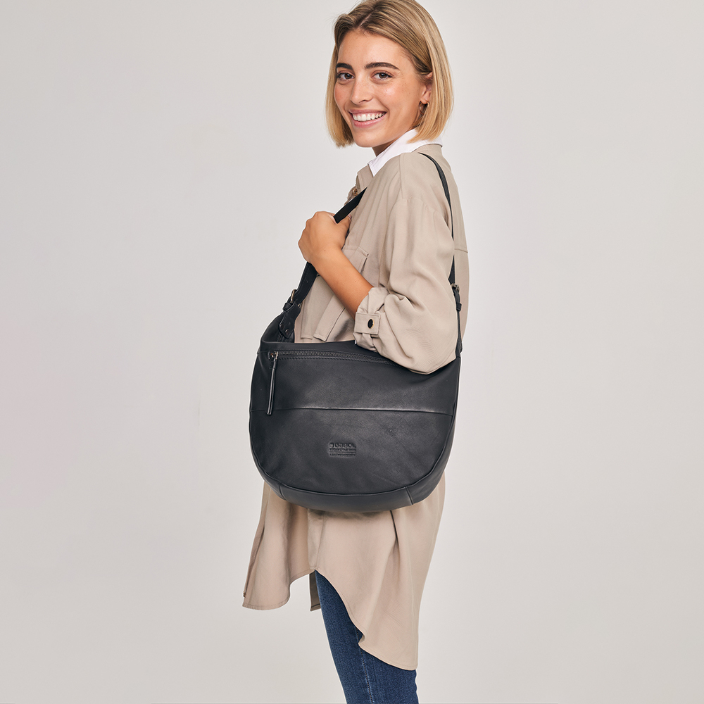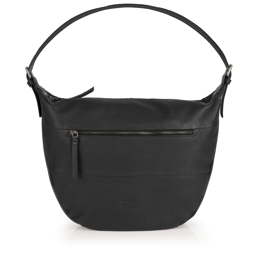 Velika ženska kožna torba sofisticiranog dizajna i veoma zanimljivog oblika. Izradjena od najkvalitenije prirodne kože. Poseduje kožni podesivi kaiš. Torba ima veliku glavnu pregradu,sa odeljkom za sitnice. Na prednjoj strani se nalazi dodatni džep koji se zatvara zipom, a sa zadnje strane takodje poseduje dodatnu pregradu.