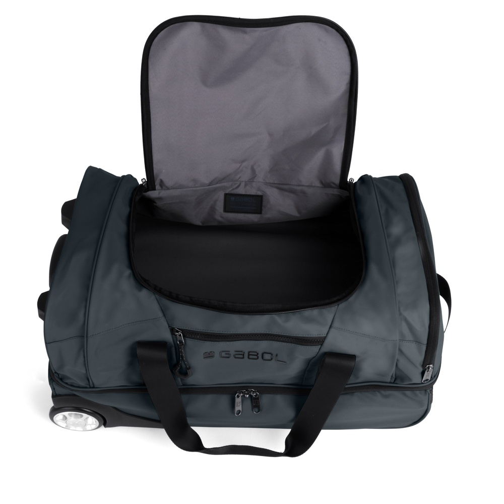 Veoma praktična putna torba sa dva točka. Sadrži dva odeljka: donji, koji se zatvara zipo-om, kao kod kofera i gornji, koji se pakuje sa gornje strane torbe. Kapacitet od 51l je sasvim solidan, čak i za duža putovanja. Dimenzije: 55x32x29 cm. Materijal: kombinacija postavljenog poliestera i veštačke kože.
