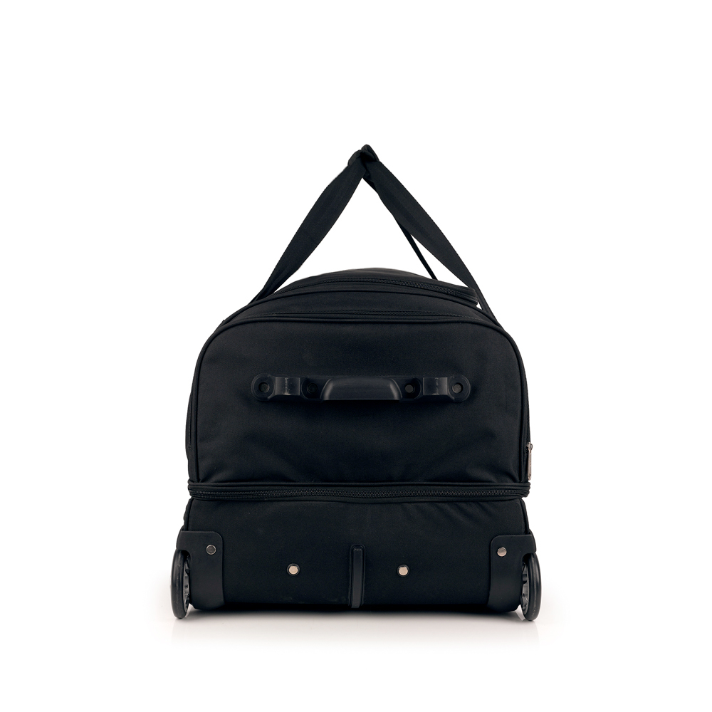 Ekstra velika putna torba sa dva odeljka,dva točkića i ručkama. Idealna za transport predmeta koji se ne mogu upakovati u kofere i klasične torbe, npr. sportske ili muzičke rekvizite. Torba je izrađena od ekološki prihvatljivog tekstilnog materijala, koji je nastao reciklažom plastičnih boca.