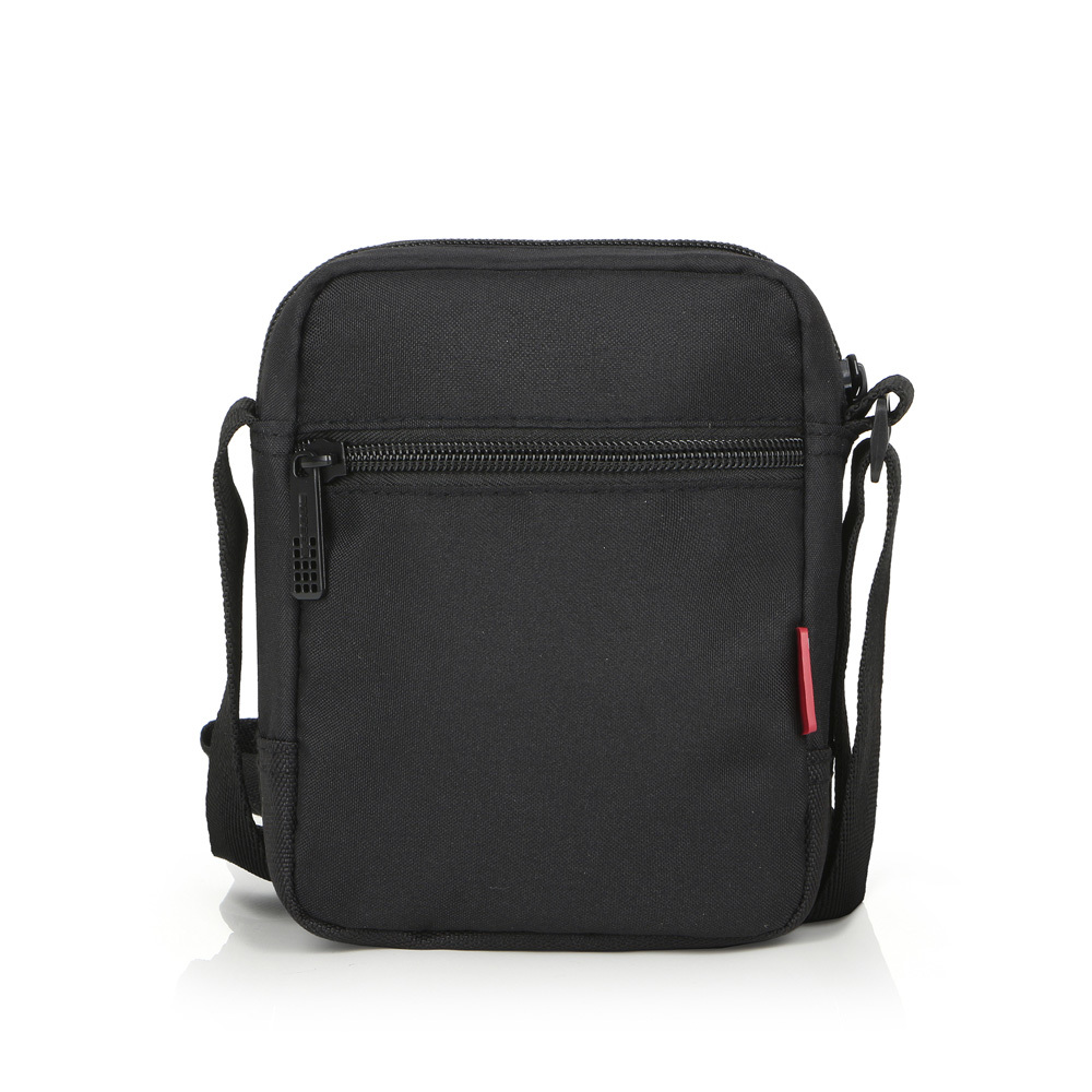 Muška torbica izrađena od RPET (reciklirani polietilen tereftalat) platna otpornog na vodu, sa dovoljno prostora da se spakuju sve potrebne sitnice. U prednjem delu se nalazi džep na preklop koji se zatvara uz pomoć čičak trake, kao i još jedan dodatni džep.