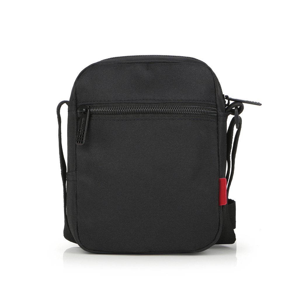 Muška torbica izrađena od RPET (reciklirani polietilen tereftalat) platna otpornog na vodu, sa dovoljno prostora da se spakuju sve potrebne sitnice. U prednjem delu se nalazi džep na preklop, zatvara se zipom i sa unutrašnje strane ima čičak traku.