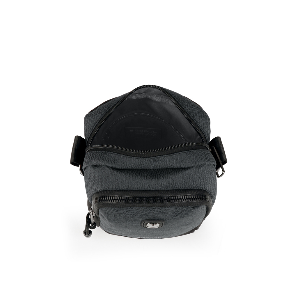 Moderna muška torba od vodootpornog poliestera. Klasičnog modernog dizajna i jednostavnih boja. Dimenzije 15 x 18 x7 cm