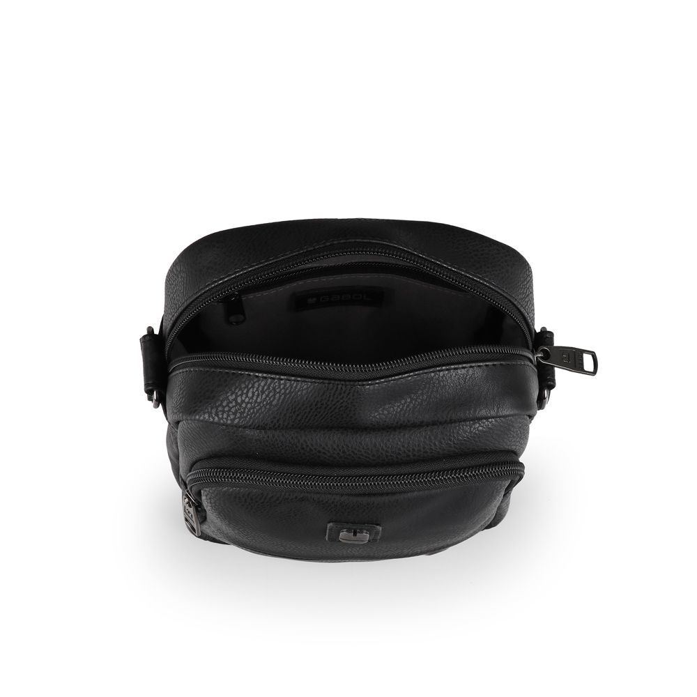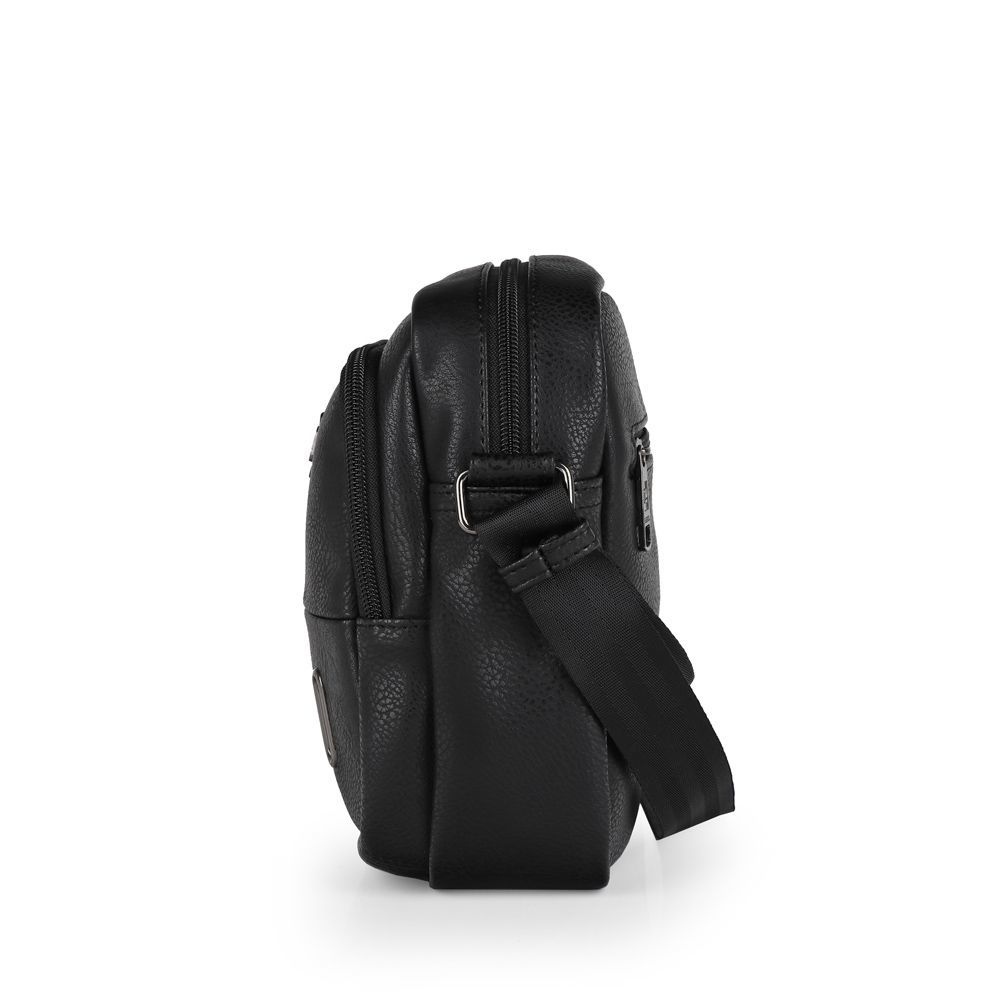 Elegantna, moderna, muška torba srednje veličine, izrađena od industrijske kože. Torba poseduje dva prednja zip džepa, veći i manji, kao i mali zip džep za zadnje strane.Centralni prostor je solidnog kapaciteta, sa dodatnom malom zip pregradom za sitnice.
