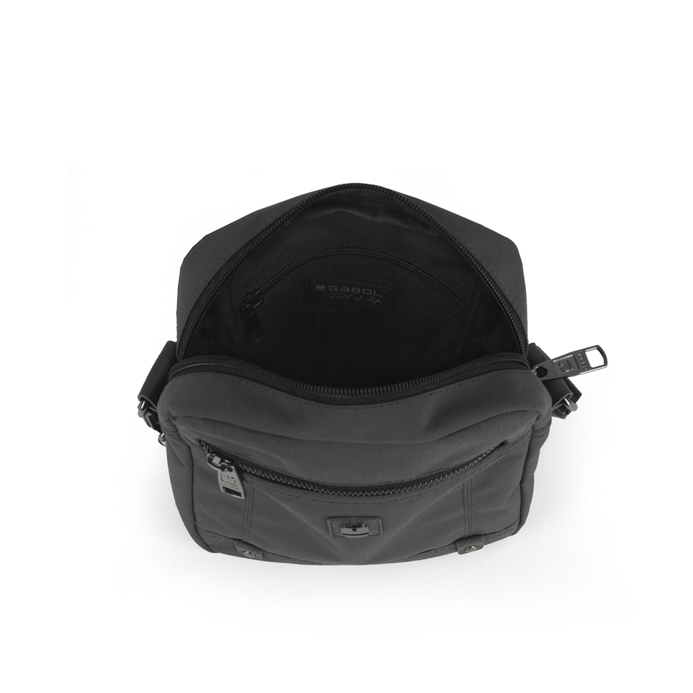 Muška torbica modernog dizajna, izrađena od vodootpornog platna, sa remenom od poliestera. Materijali su vodootporni i ne sadrže PVC plastiku.