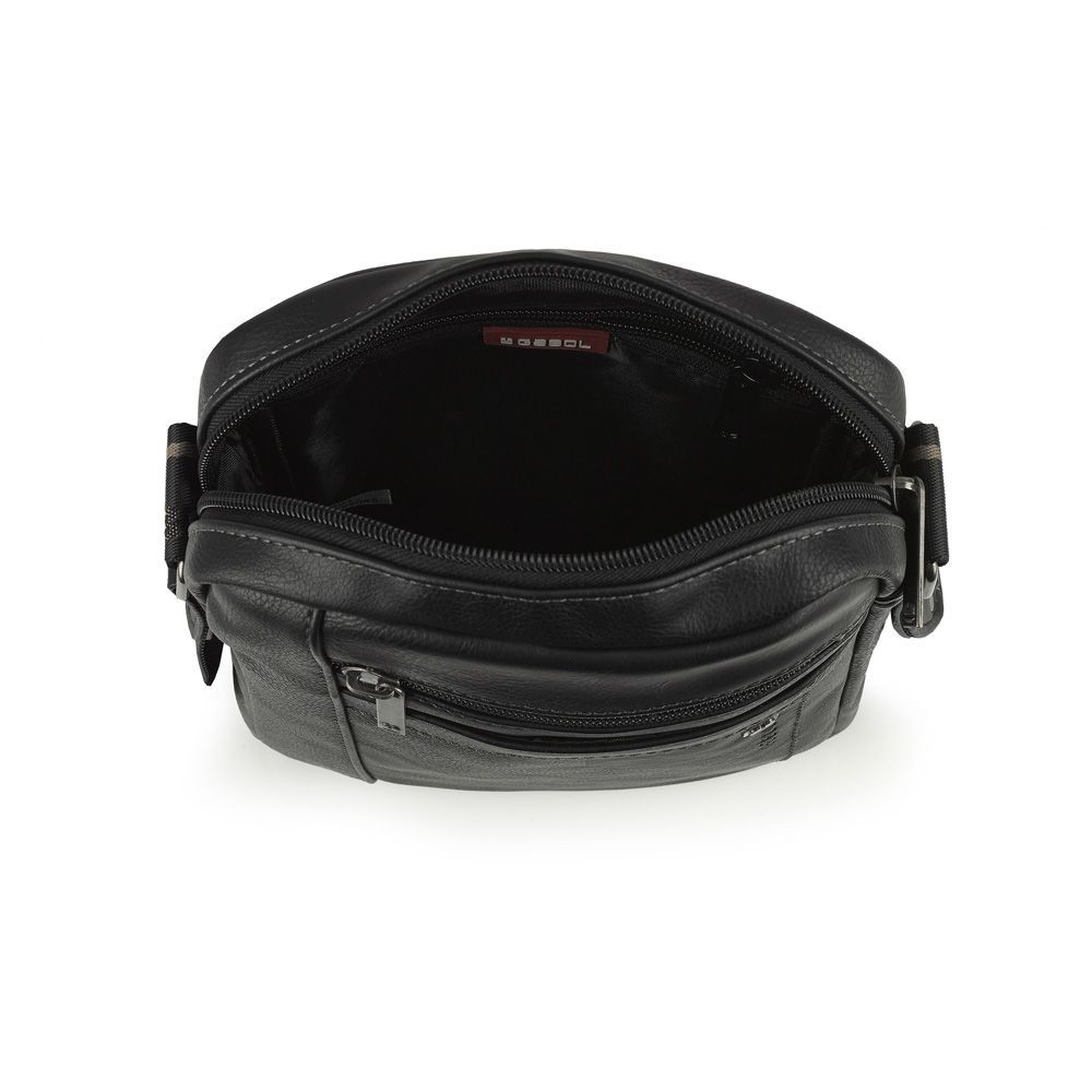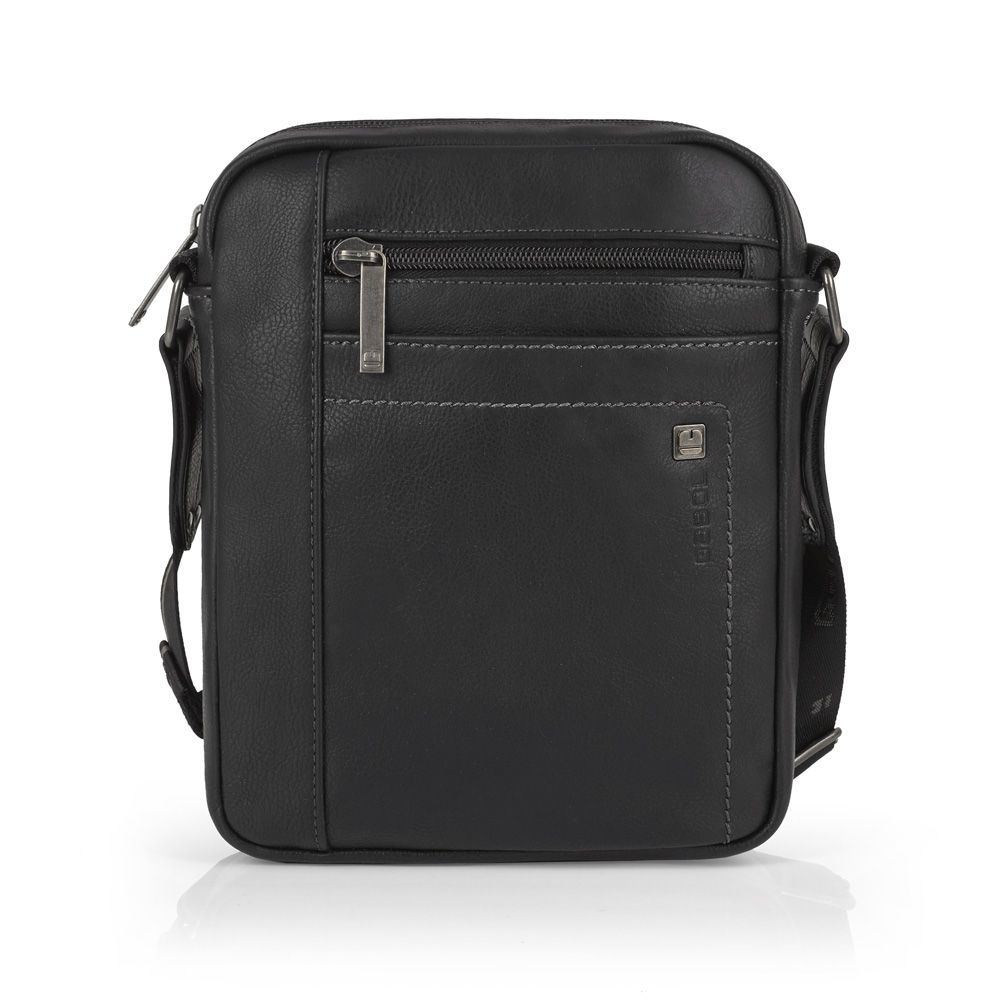 Moderna muška torbica na rame većih dimenzija, od veštačke kože izuzetne izrade. Sa prednje strane nalaze se manji i veći džep, veći se zatvara zipom. Unutar glavne i najveće pregrade sa prednje strane se nalazi manji džep, a sa zadnje veći.