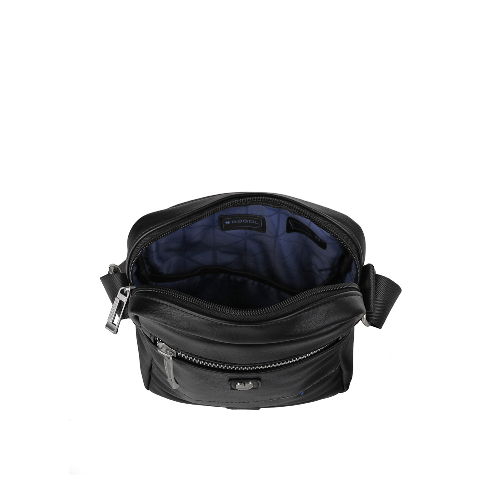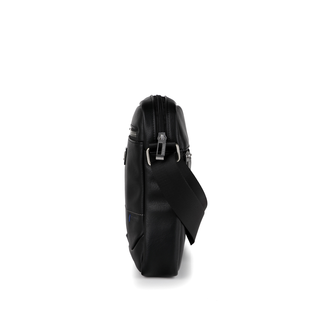 Torbica modernog dizajna od veštačke kože, izuzetno dobre izrade i lagana. U centralnom delu ima dodatne džepove za bolju organizaciju. Prednji i zadnji džep sa zipom dodatno poboljšavaju funkcionalnost. Dimenzije: 19x24x7 cm. Boja: crna.