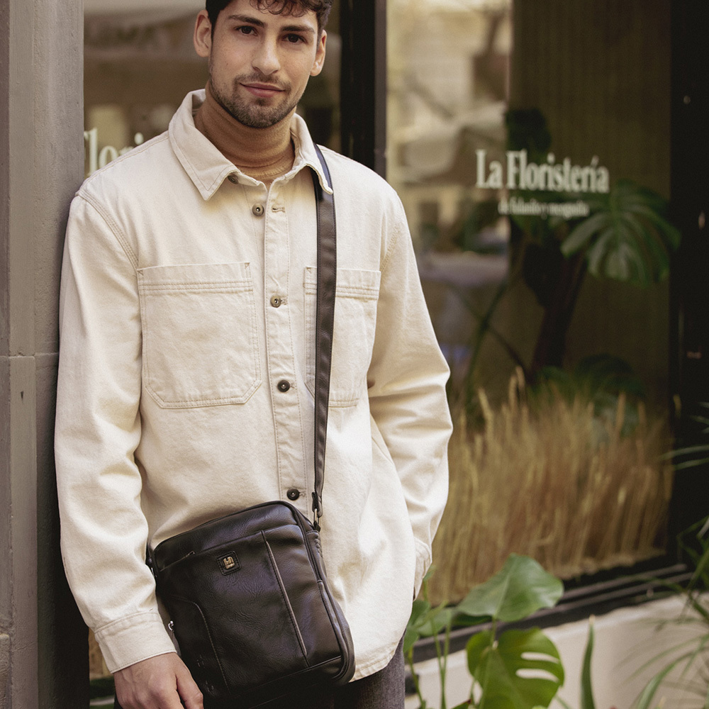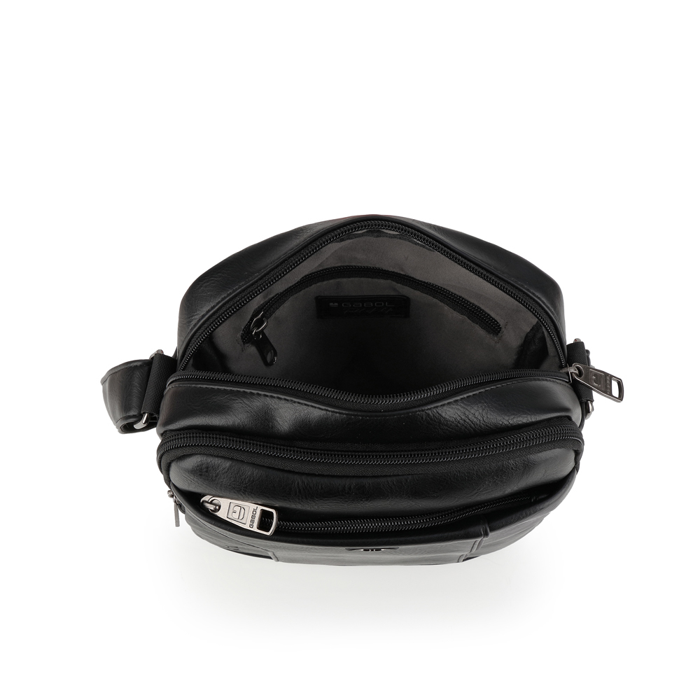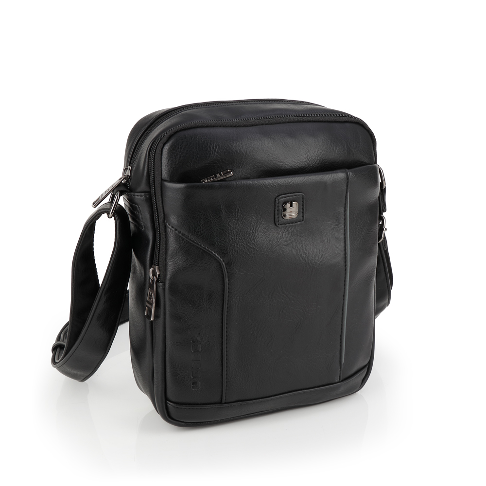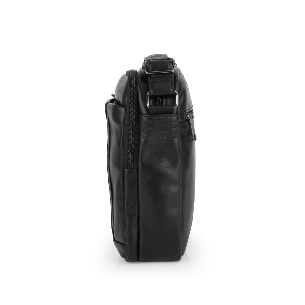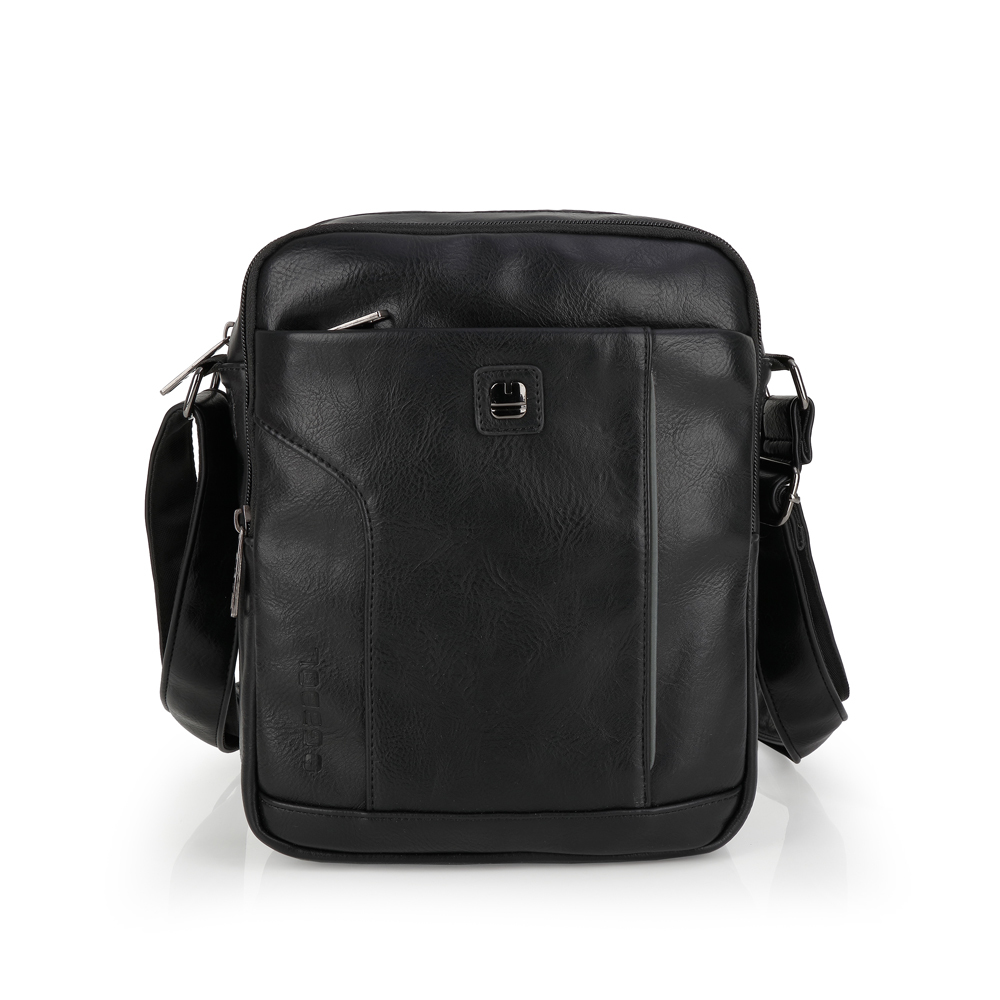 Moderna muška torba od sintetičke kože na rame. Sve pregrade su zaštićene kvalitetnim metalnim zip sistemom,dok je unutrašnjost opšivena kvalietnom postavom. Diskretni džep sa prednje strane se takođe zatvara zipom. Dimenzije 20 x 25 x 8 cm