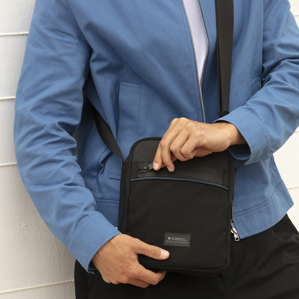 Muška torba modernog dizajna većih dimenzija. Izradjena je od poliestera, vodonepropusnog, PVC free materijala. Krasi je mnoštvo pregrada, tako da je idealna za svakodnevnu upotrebu. U glavnu i najveću pregradu možete odložiti tablet do 8". Na prednjoj strani se nalazi posebna pregrada i dodatni skriveni džep, za odlaganje ključeva, kartica, dokumenata. Sa zadnje strane se nalazi dodatni džep, sve pregrade se zatvaraju pomoću zipa.