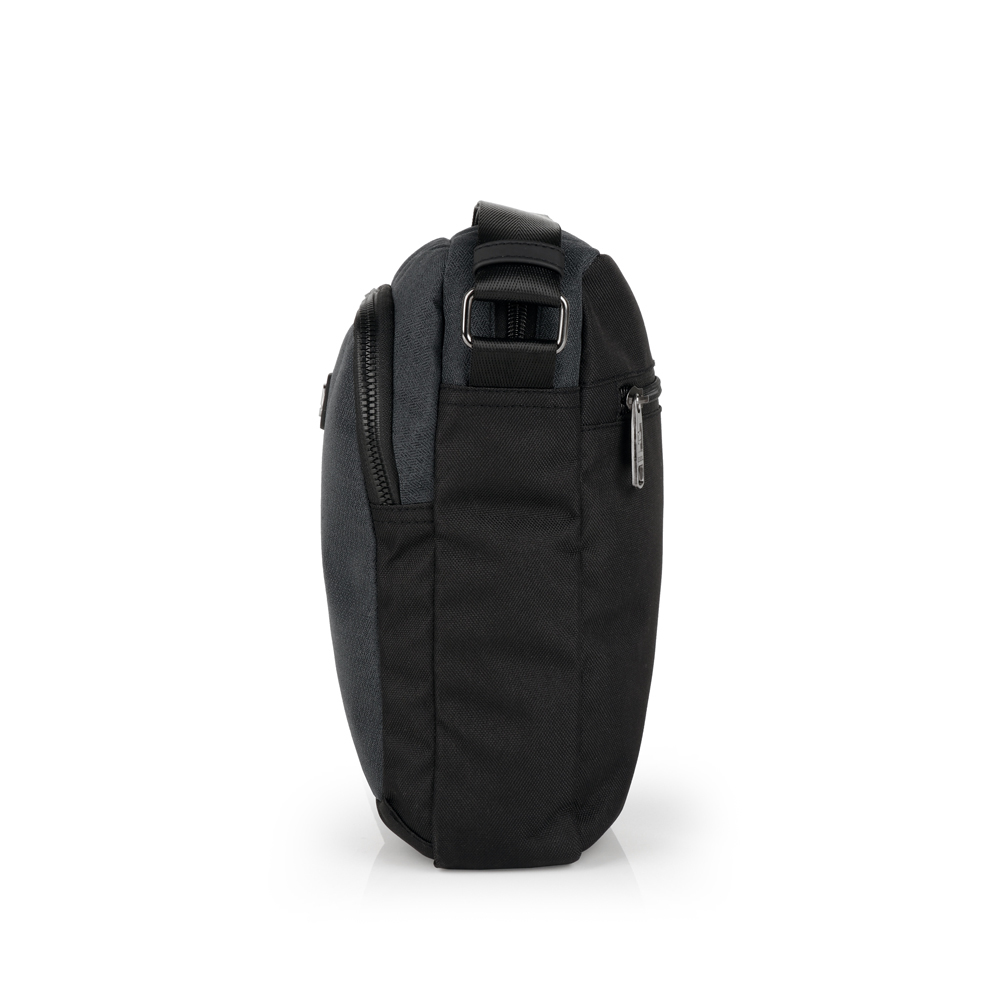 Jednostavna muška torba na rame. Klasičnog i jednostavnog dizajna, praktična za nosivost tableta, i osnovnih sitnica. Sve pregrade razdvojene kvalitetnim zipom.Sitnetički materijal je vodootpornog karatkera. Dimenzije 20 x 25 x 8 cm